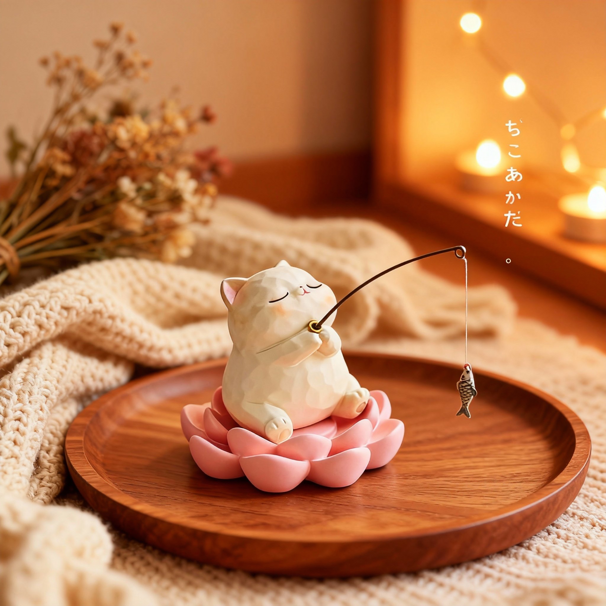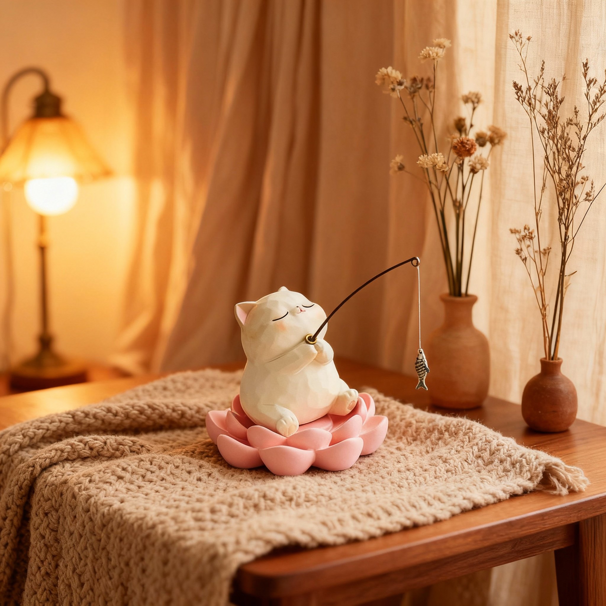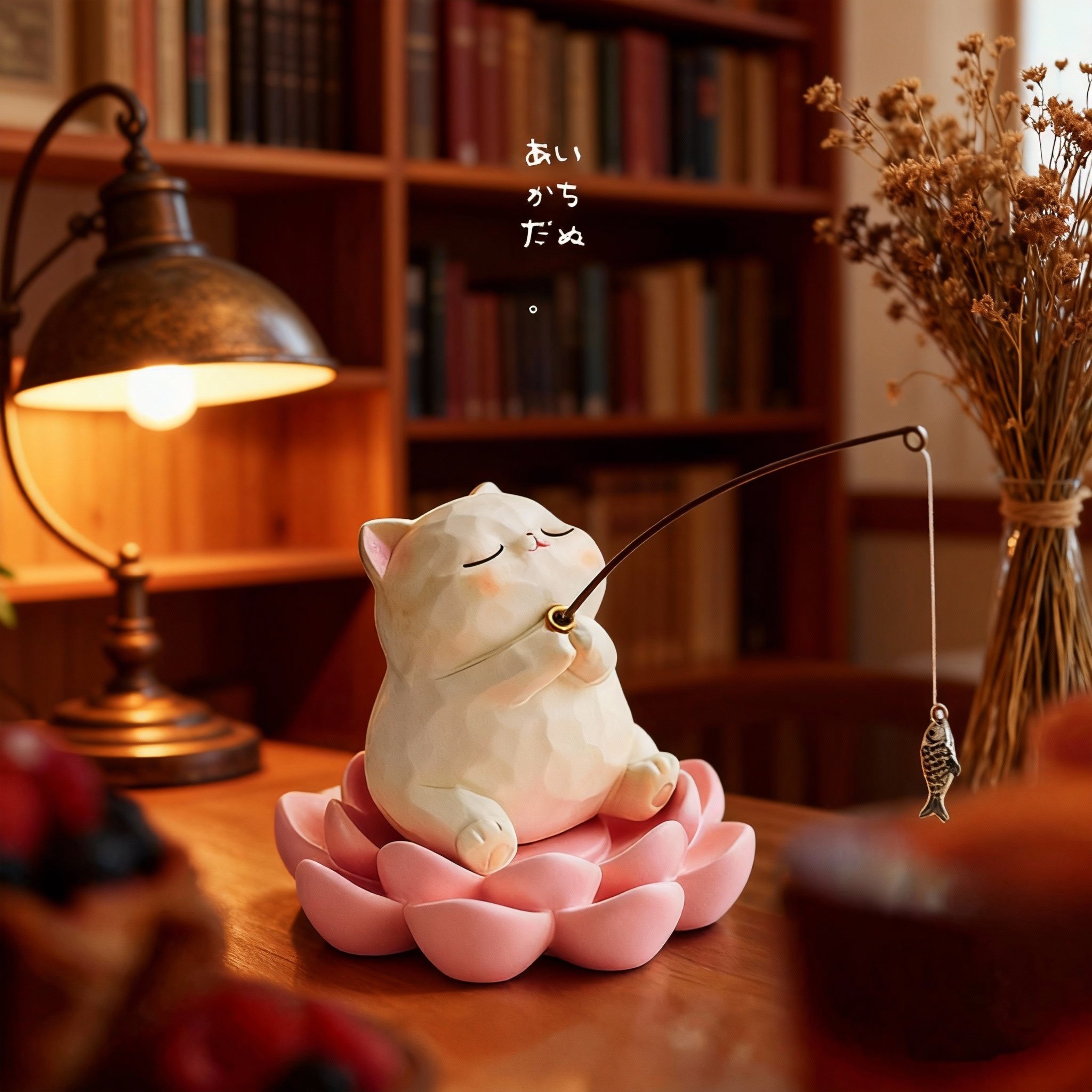 可爱猫咪钓鱼摆件陶瓷工艺品家居装饰品小众设计感桌面摆件