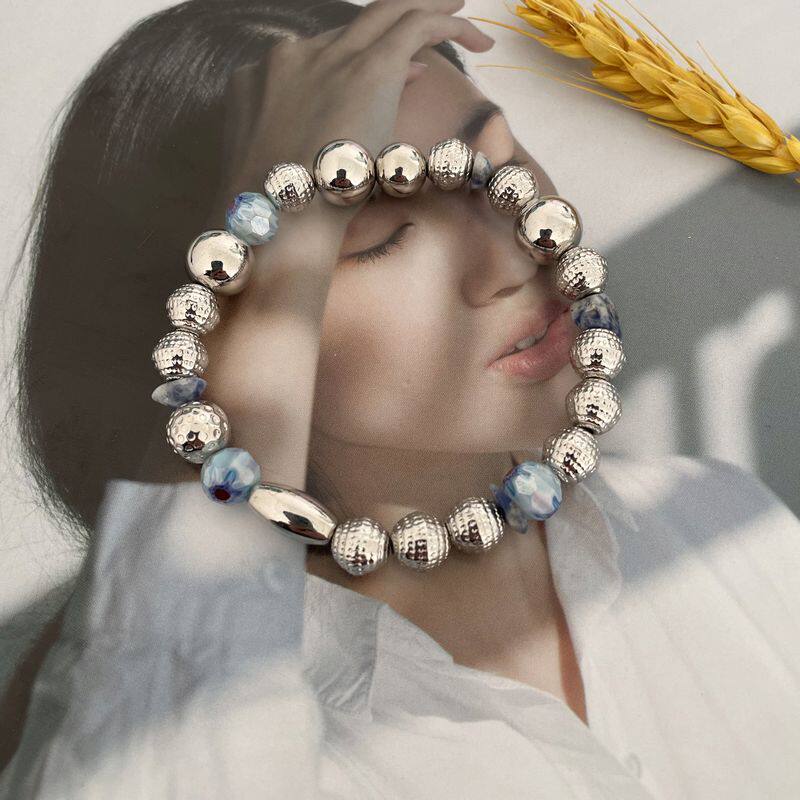 s63时尚百搭秀气金属搭配琉璃碎石手串唯美创意个性气质日常手链