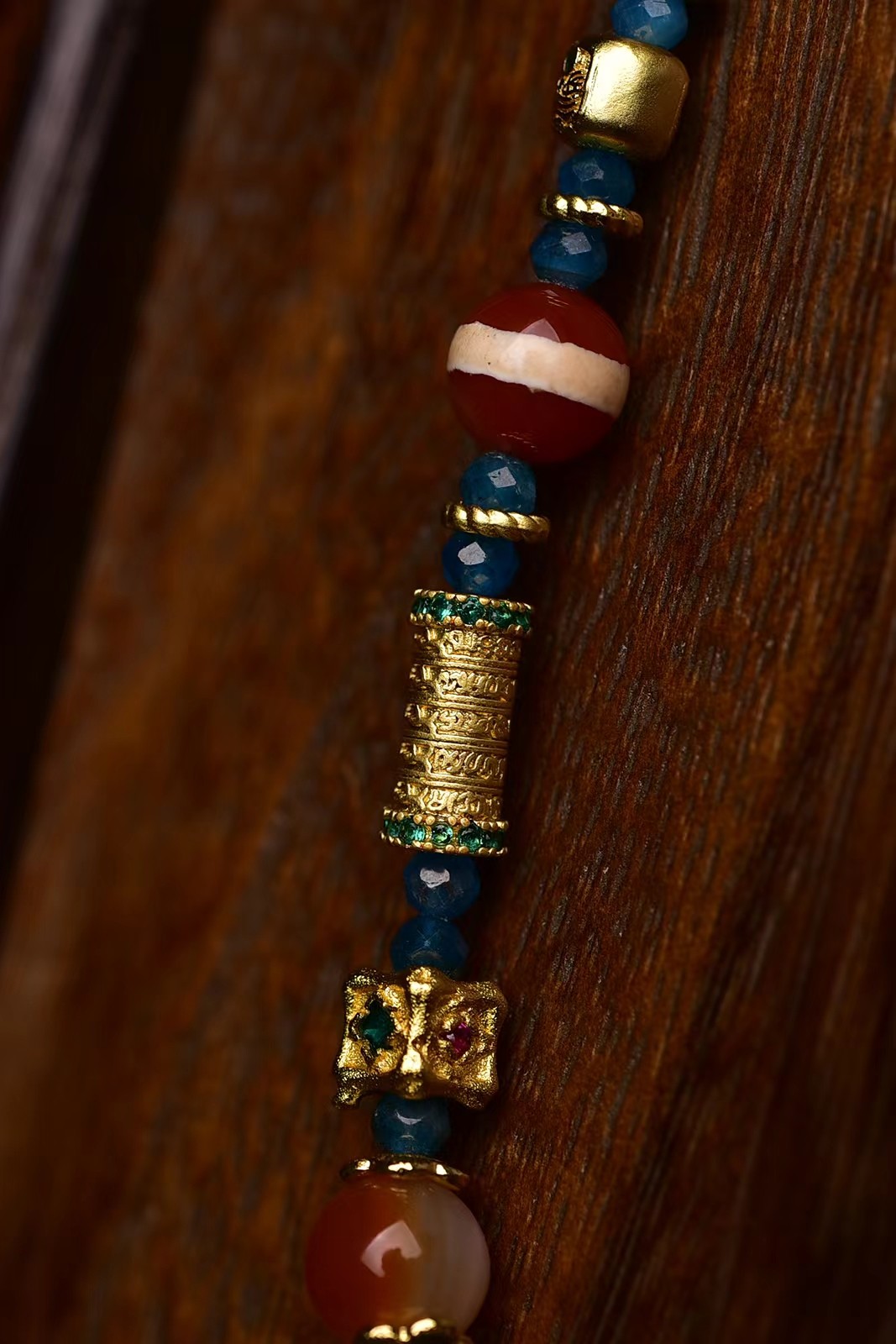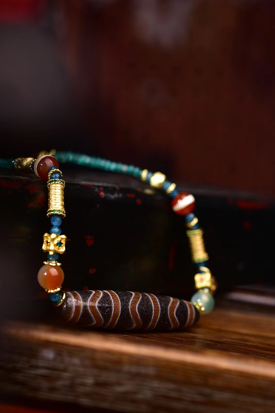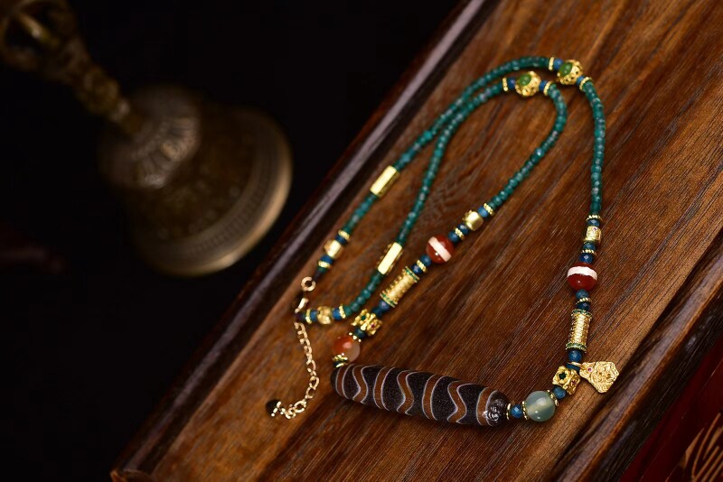水纹天珠尺寸56×12mm搭配碧玺米珠一线天珠红天眼天珠绿天眼天珠