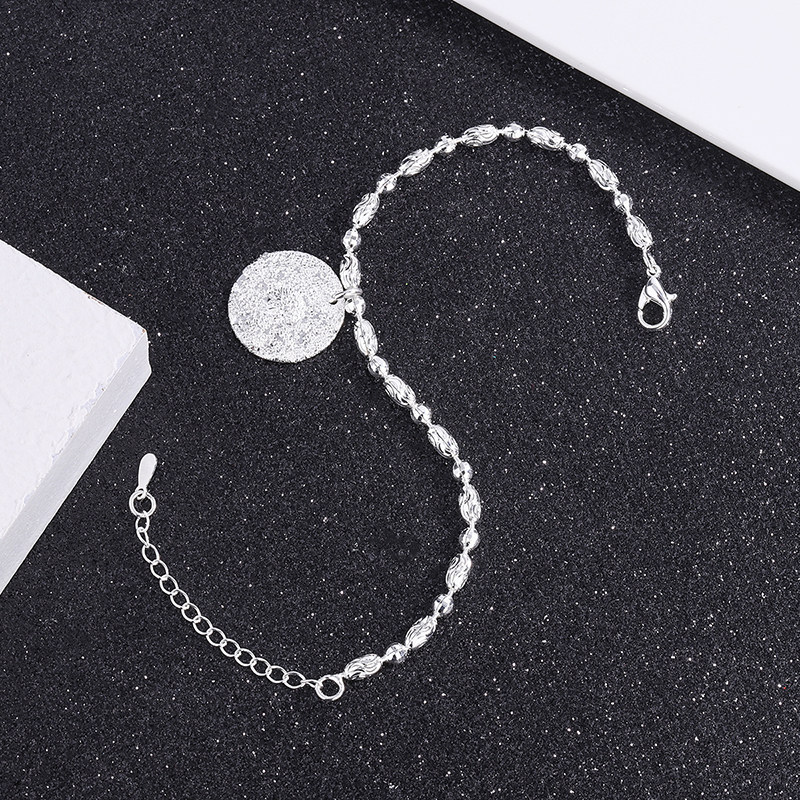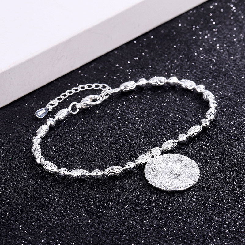 日系圆牌吊坠手链男潮嘻哈街头ins冷淡风锁骨链女配饰925银不掉色
