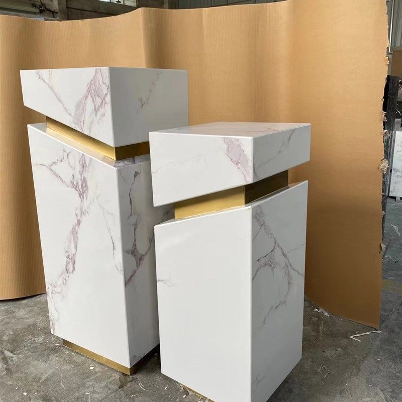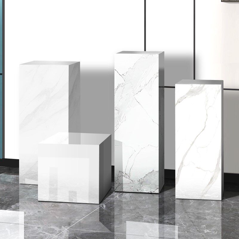 白色石墩展台摆件客厅售楼部艺术装饰品展示台商场大理石雕塑底座