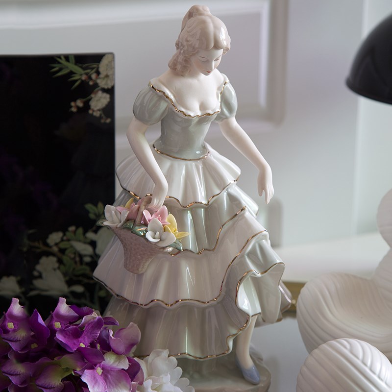 中古瓷偶提裙女孩高级感法式公主桌面小屏风氛围感装饰陶瓷蓝摆件