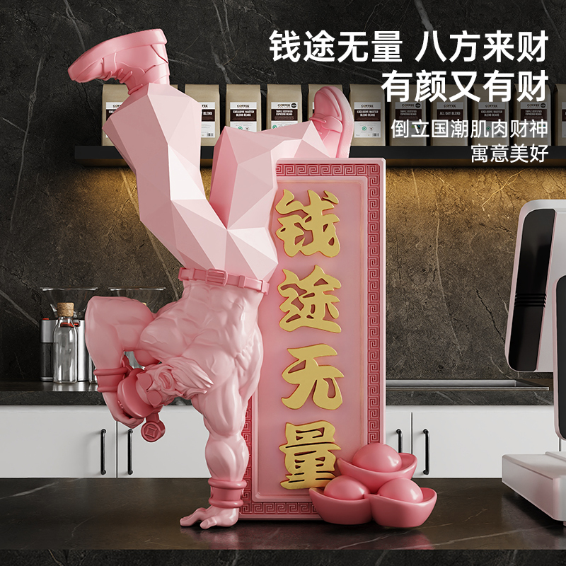 倒立肌肉财神爷桌面招财摆件家用办公室收银台装饰品乔迁开业礼物