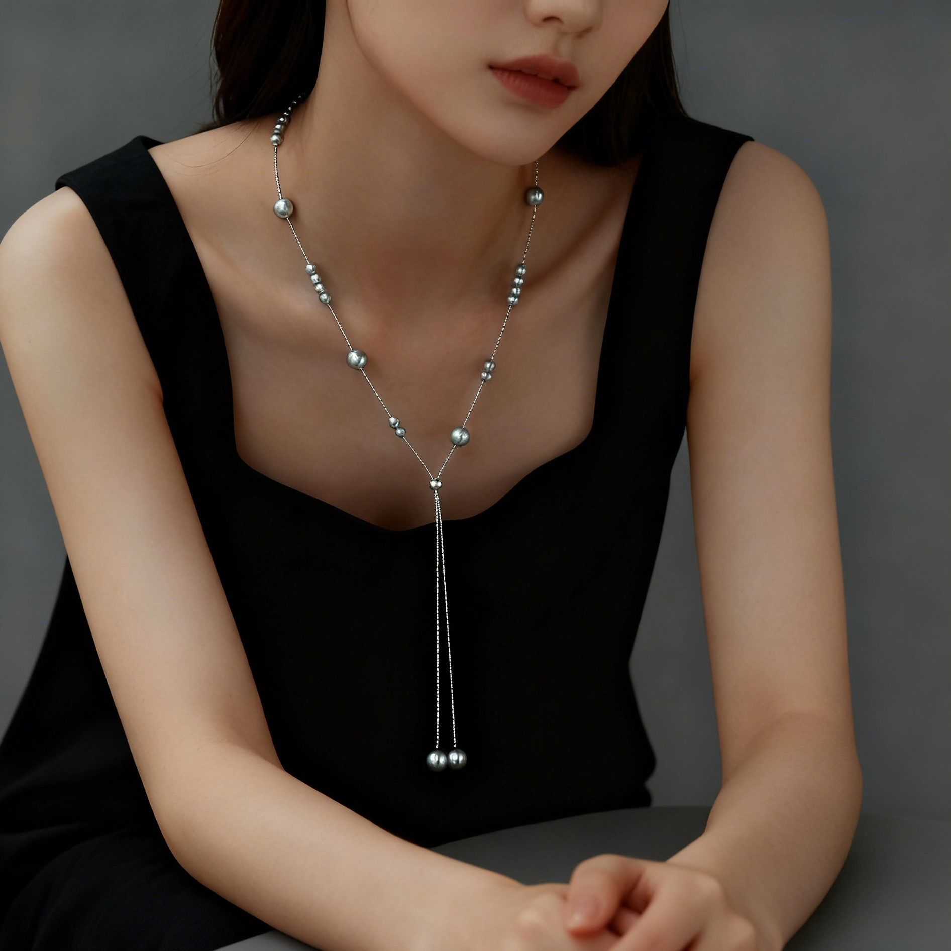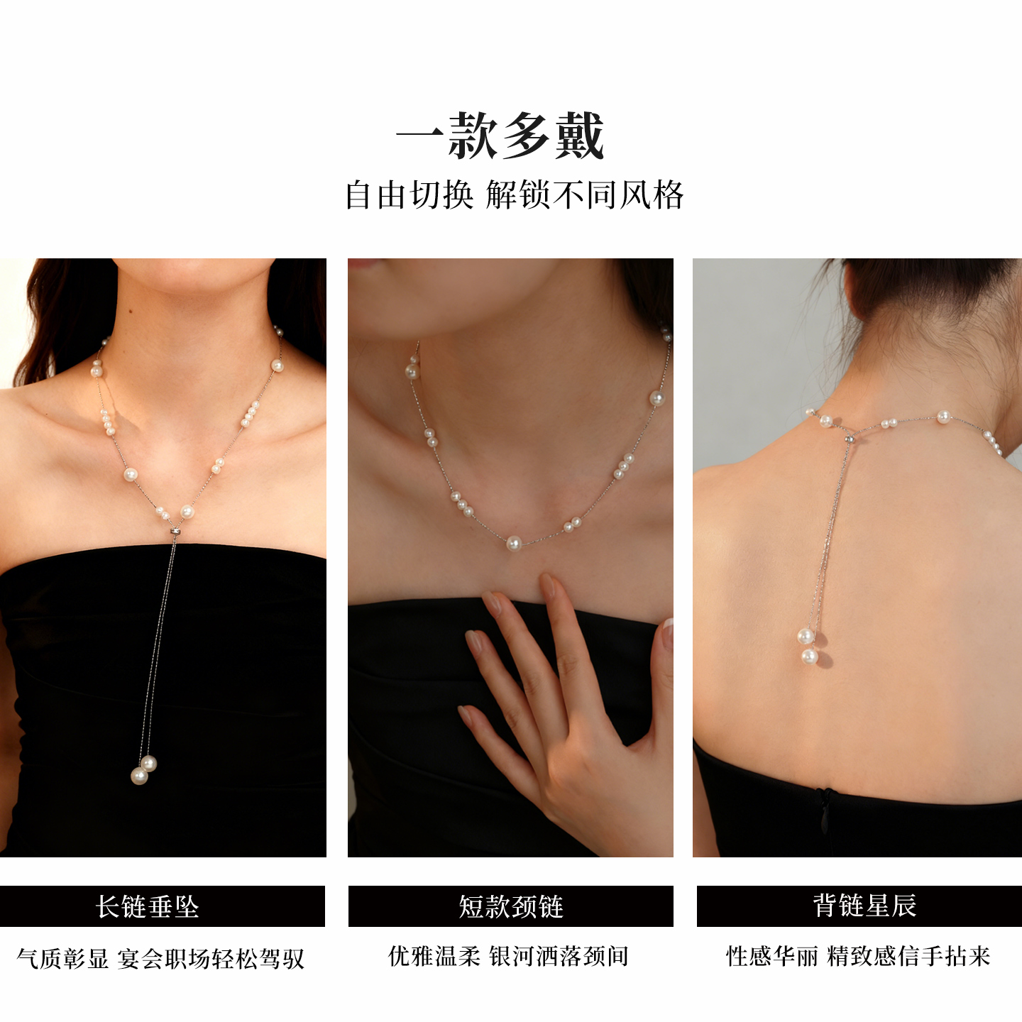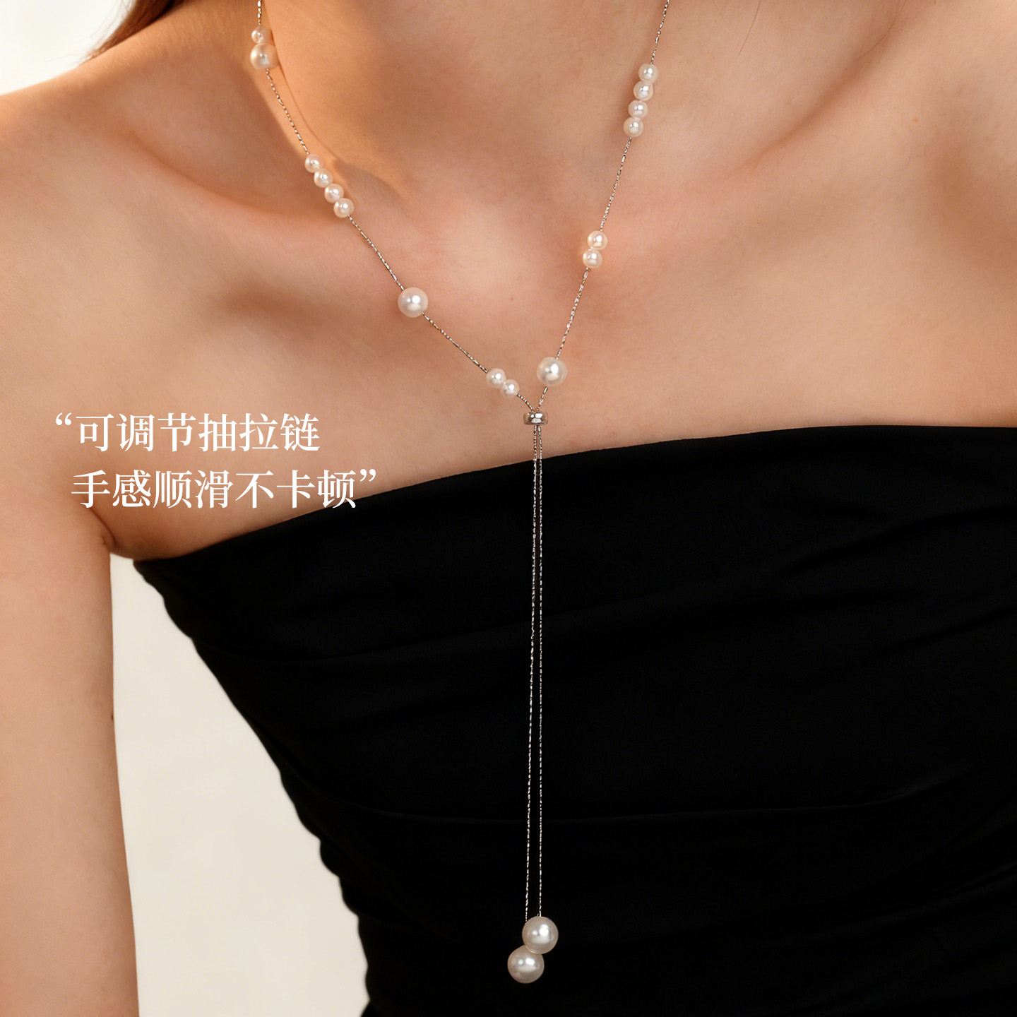 满天星珍珠项链女配饰颈链长款毛衣链轻奢高级感可抽拉设计锁骨链