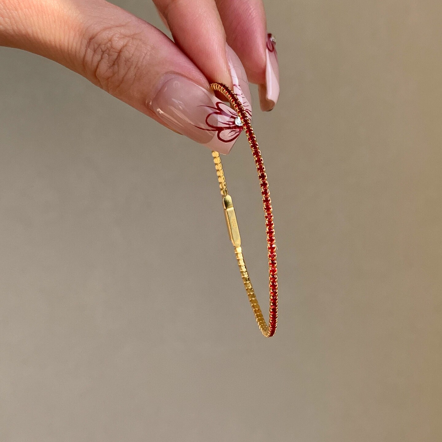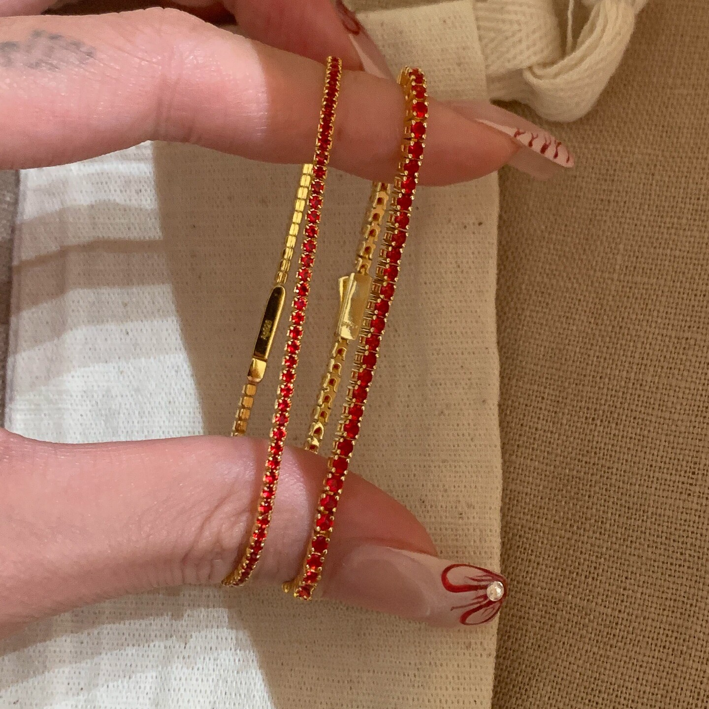 极细款仿红宝石手链女款轻奢小众精致高级感气质百搭新年红色手饰