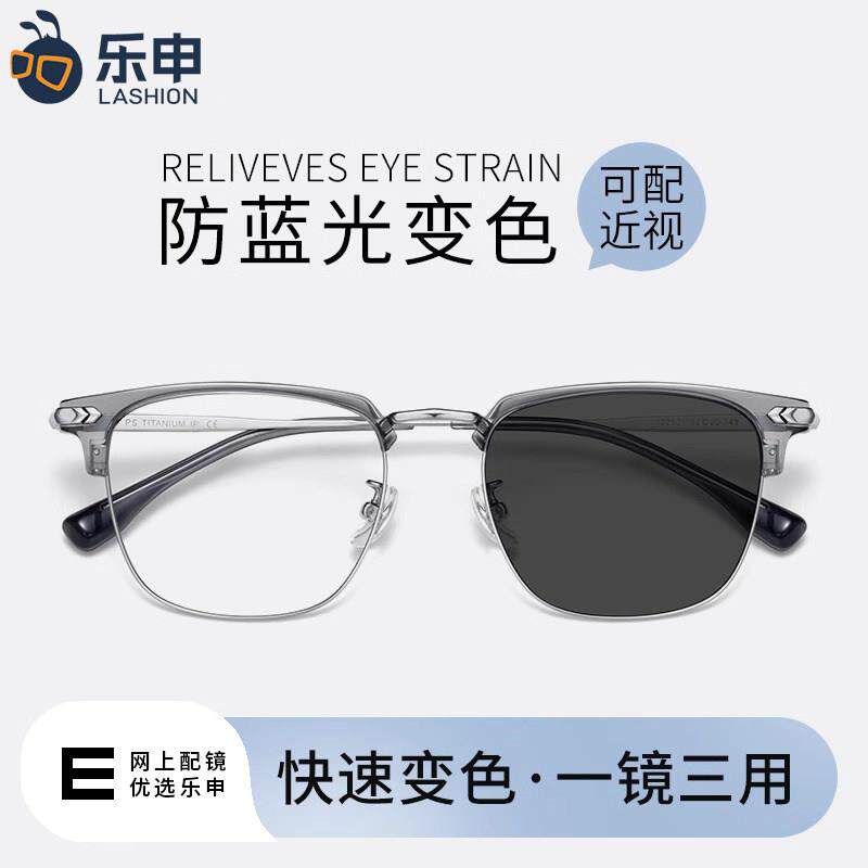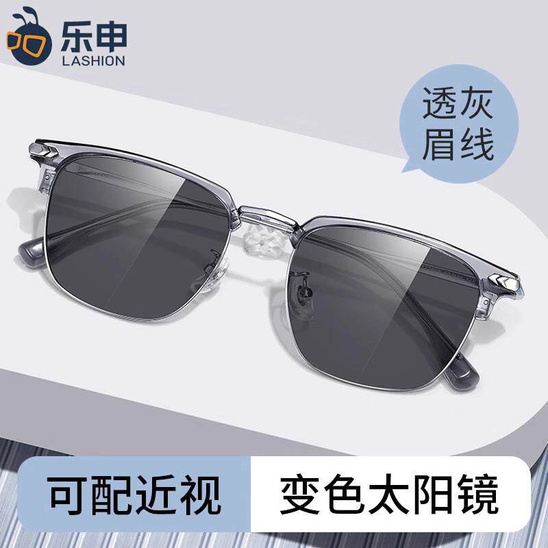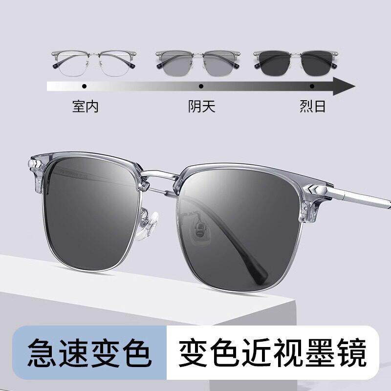 透灰色金属半框太阳眼镜男款自动感光变色防蓝光近视眼镜带度数太