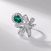 跨新款蝴蝶结满钻彩宝宝石戒指S925银镀18K金培育祖母绿个性指戒