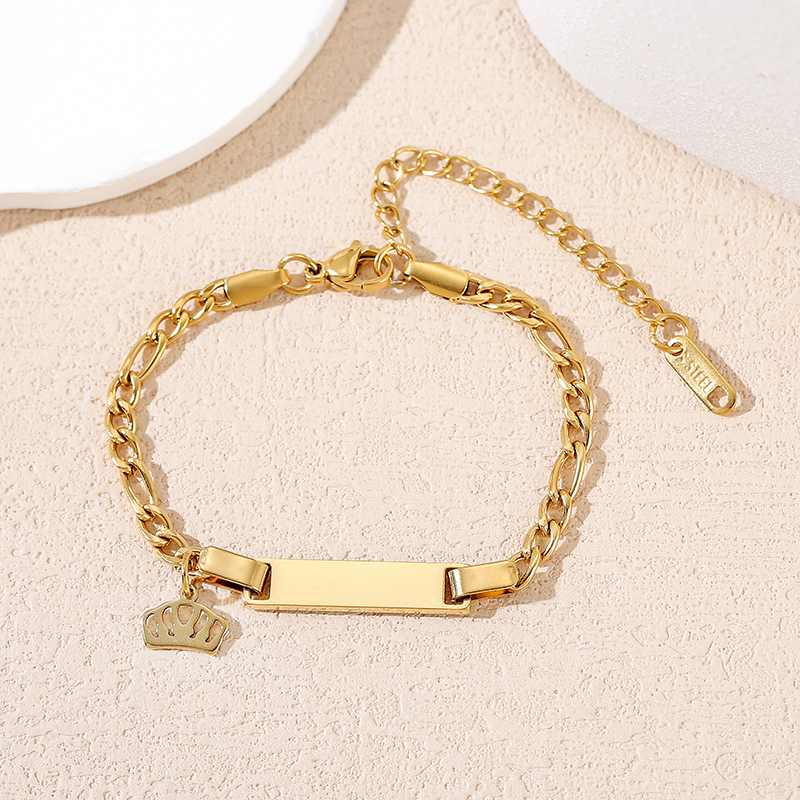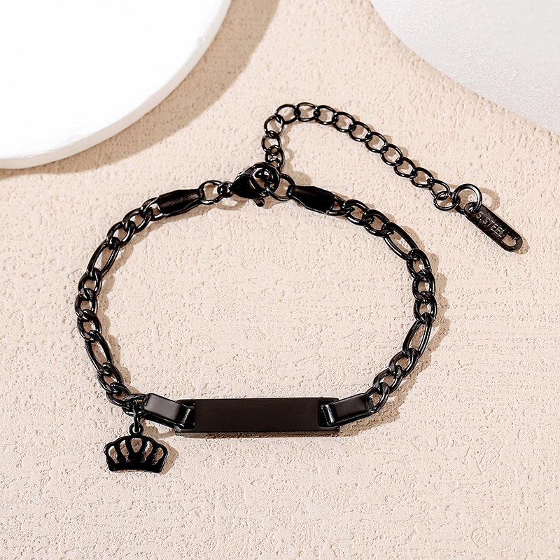 欧美跨境空白无字不锈钢古巴链直牌手链电镀激光雕刻皇冠手链新品