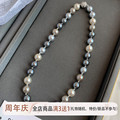 施家正品小众铂金灰色强光珍珠项链女大溪地复古高级感极细毛衣链