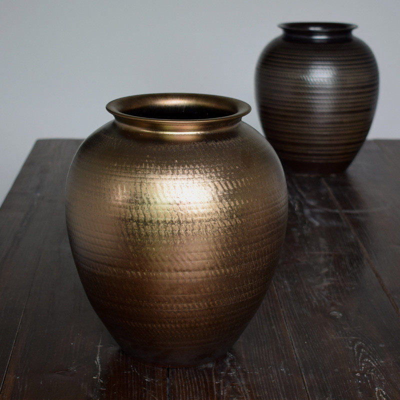 金色陶瓷花瓶桌面落地大号插花器干枝陶罐酒店样板房玄关装饰摆件
