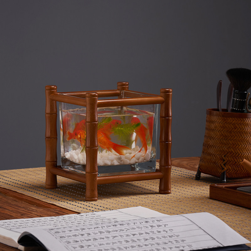 优选竹制桌面养生鱼缸架茶室装饰花几盆景绿植花台架展示台案几置