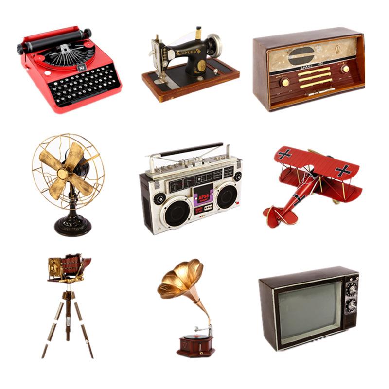 复古老式电视机放映机摄影机打字机缝纫机收音录音机模型道具摆件