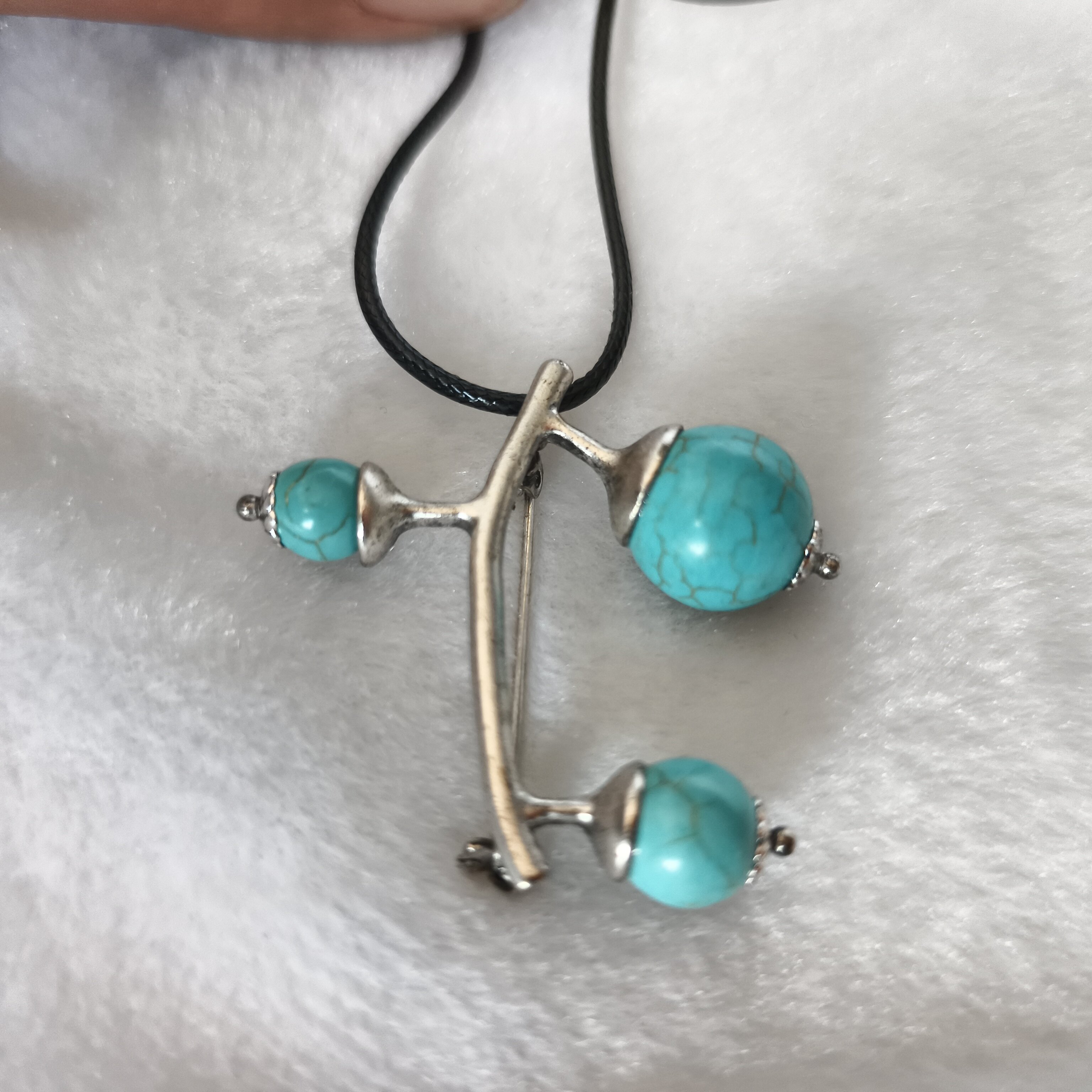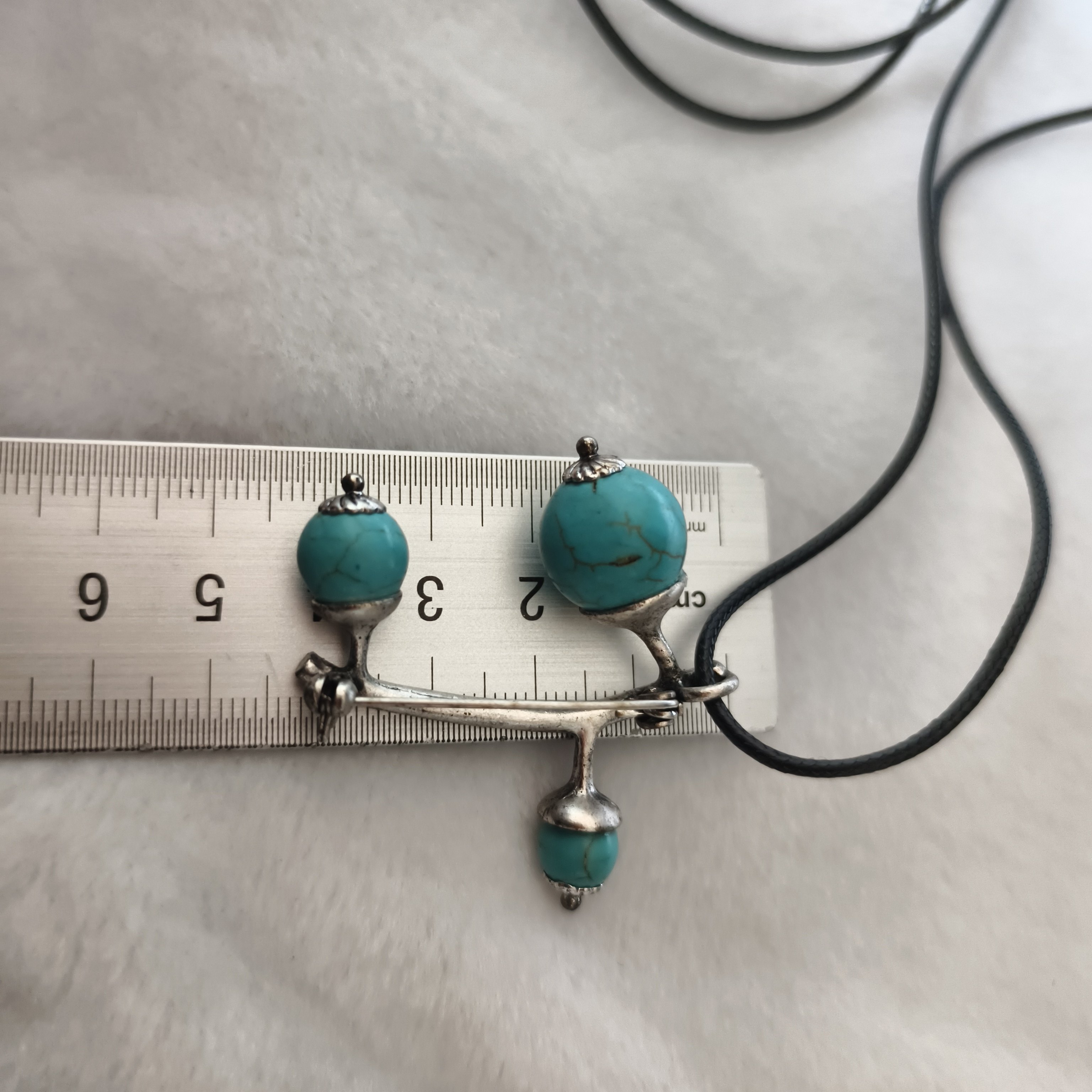 外贸饰品毛衣链潮流时尚百搭复古蛇皮绳植物果实绿松石长款项链