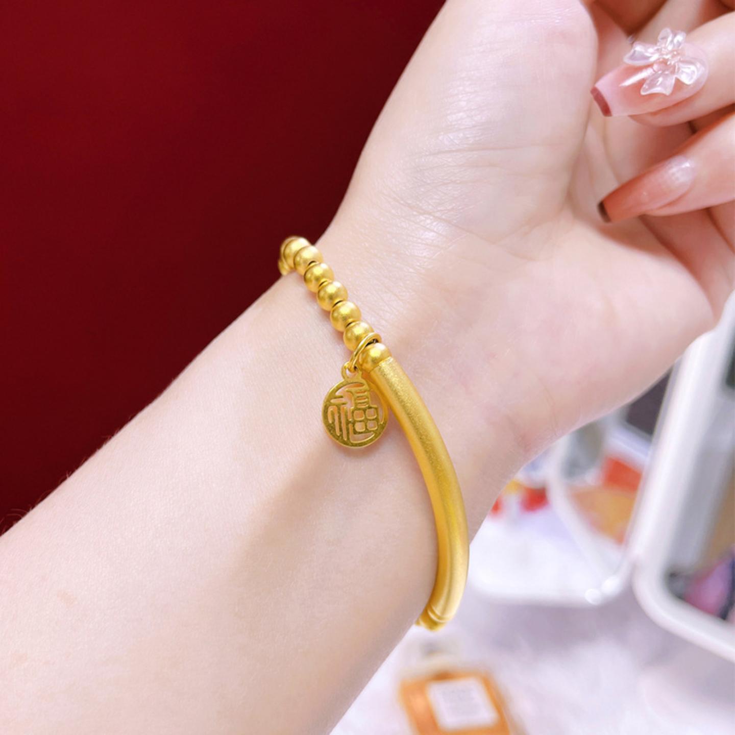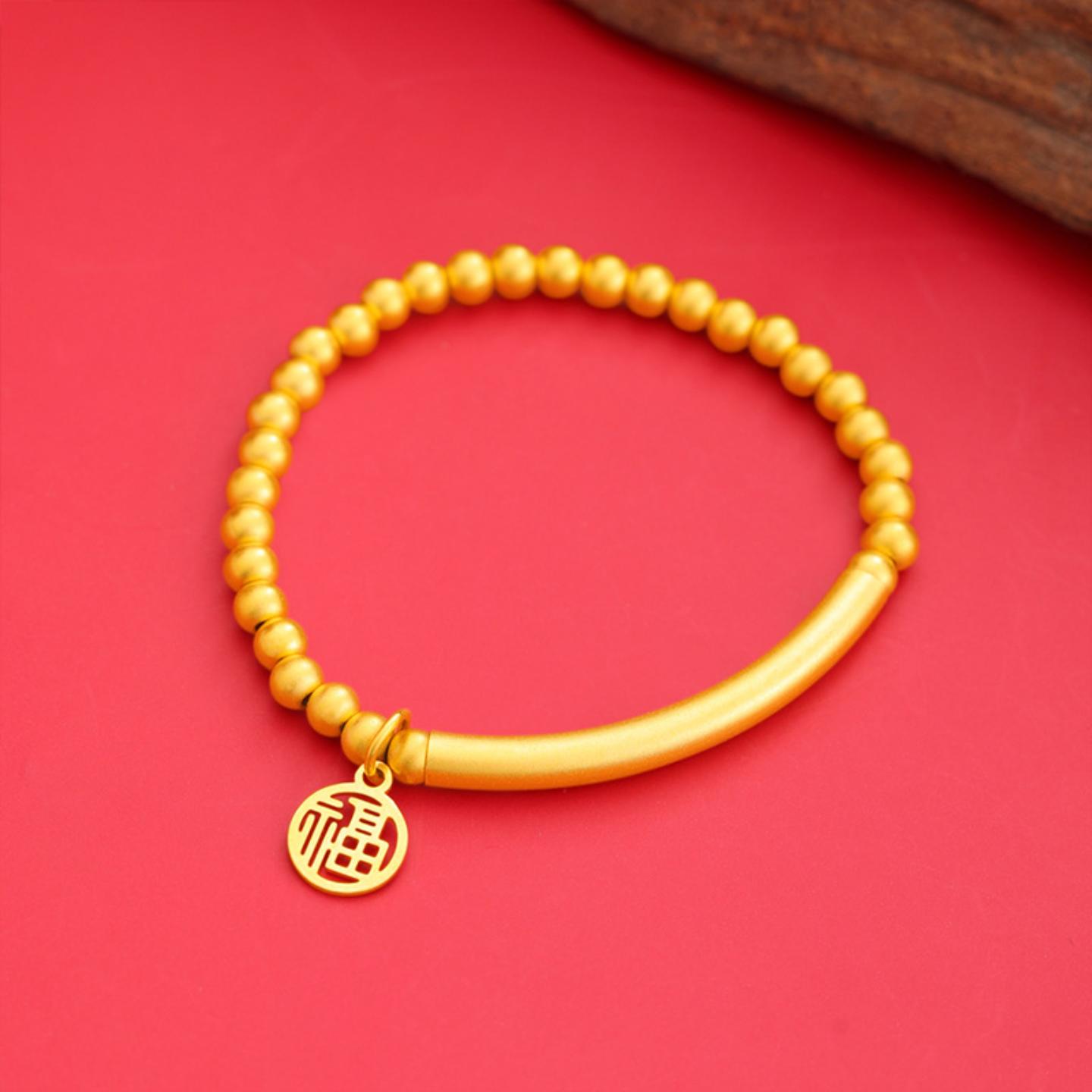 新品古法传承手镯福牌弯管半镯福字弹力串珠手链女款吉祥手饰