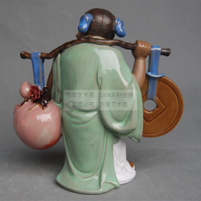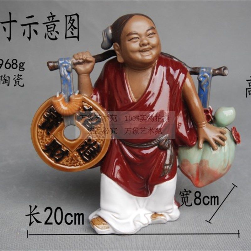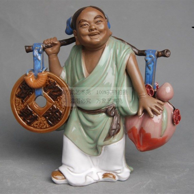 精品款运财童子进宝陶瓷公仔摆件怀旧家居书桌桌屏风送礼石湾出品
