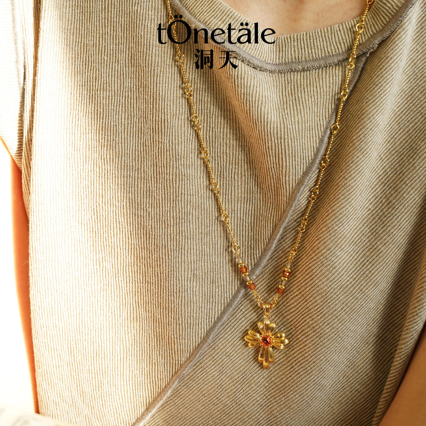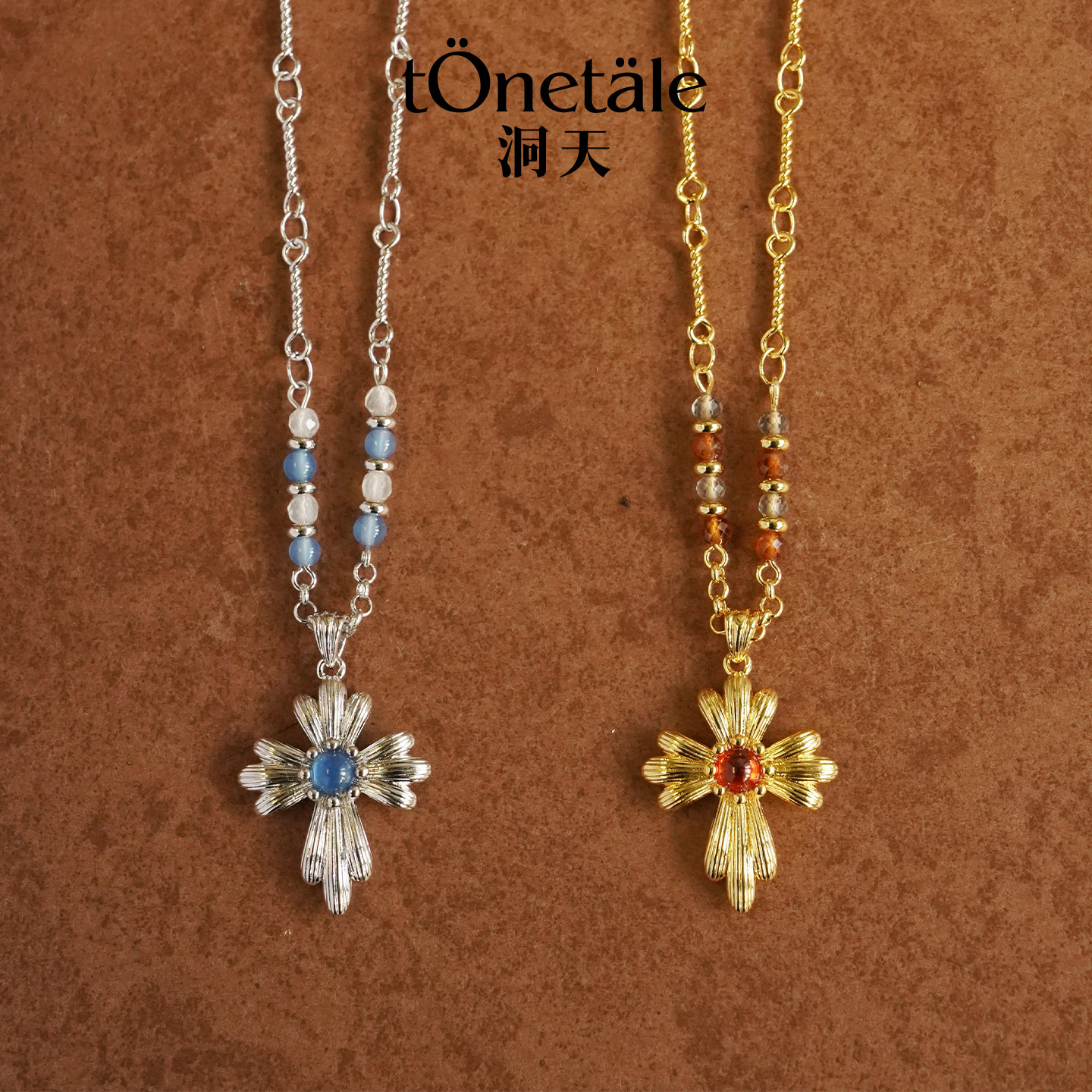 TONE&TALE原创弗朗花十字项链女时尚高级感精致个性十字架设计感