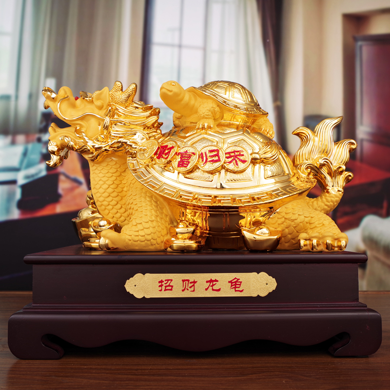 龙龟摆件大号实木底座 金钱龙头母子龟 家居办公室玄关工艺品摆设