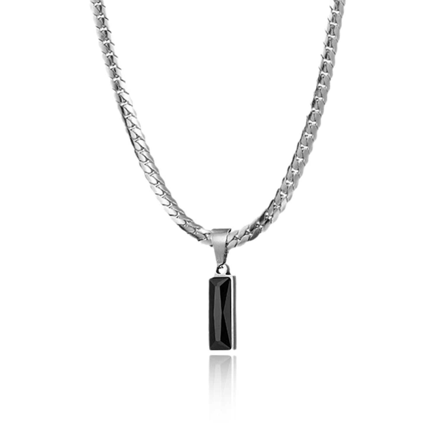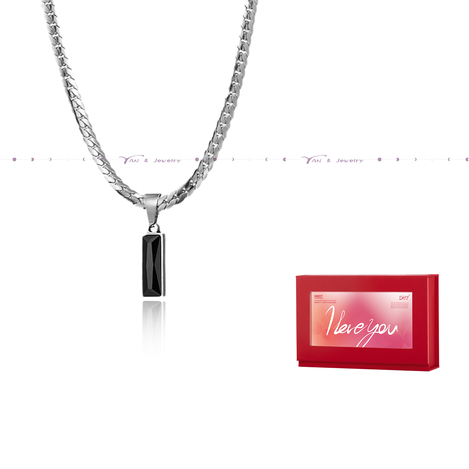 DH7黑色方形锆石吊坠钛钢项链女款轻奢小众高级感锁骨链男士七夕