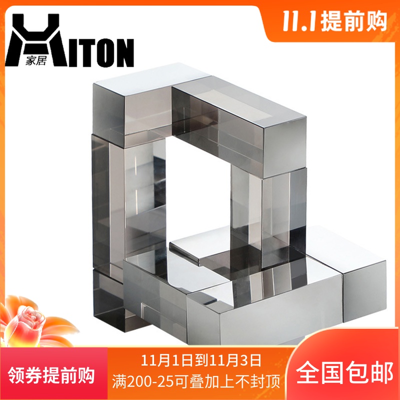 简约现代电镀金属透明水晶几何摆件 样板间客厅茶几桌面软装饰品