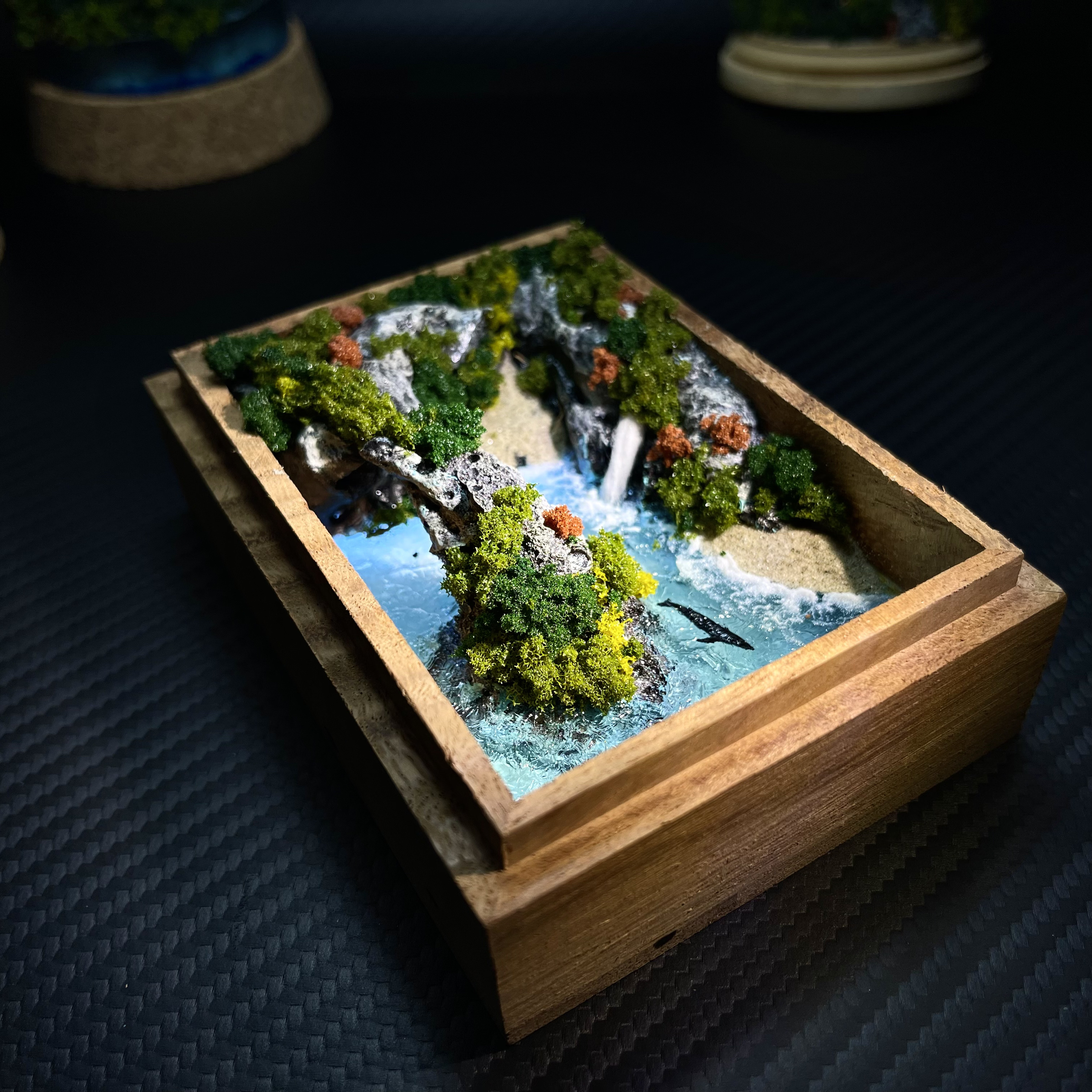 原创纯手工 蓝礁湖微缩景观 模型摆件装饰 礼品 桌面 小夜灯 包邮