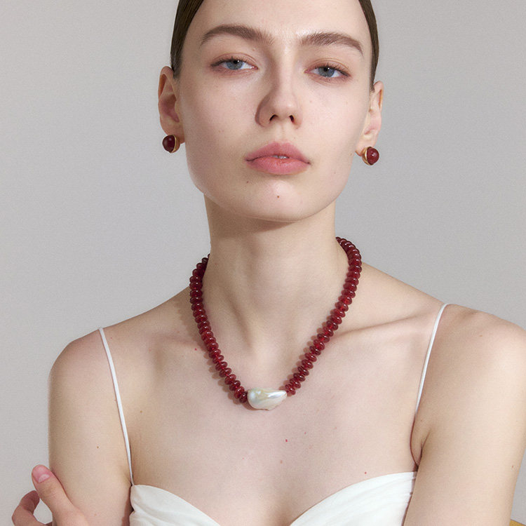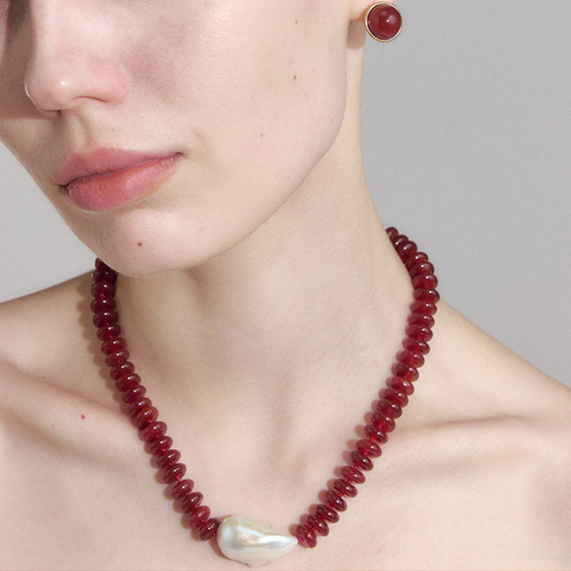 DINN DINN DESIGNvintage系列高级感红玛瑙本命年拼接巴洛克项链