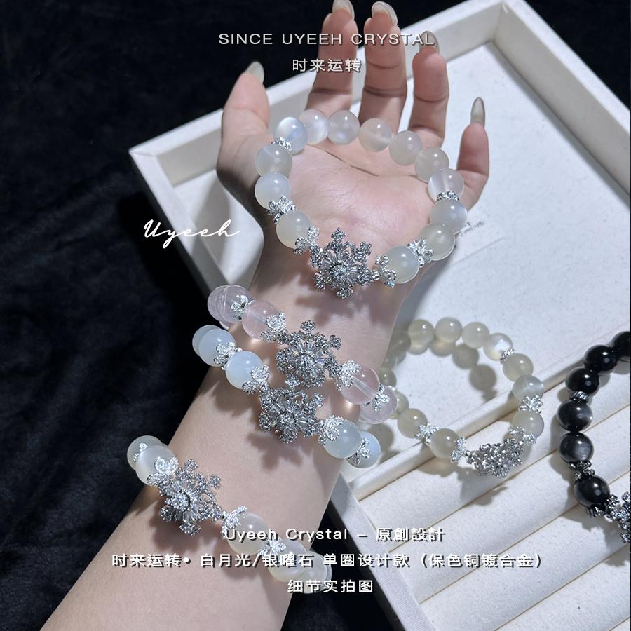 【时来运转】白月光天然招桃花水晶手串大满钻旋转雪花冰种手链女