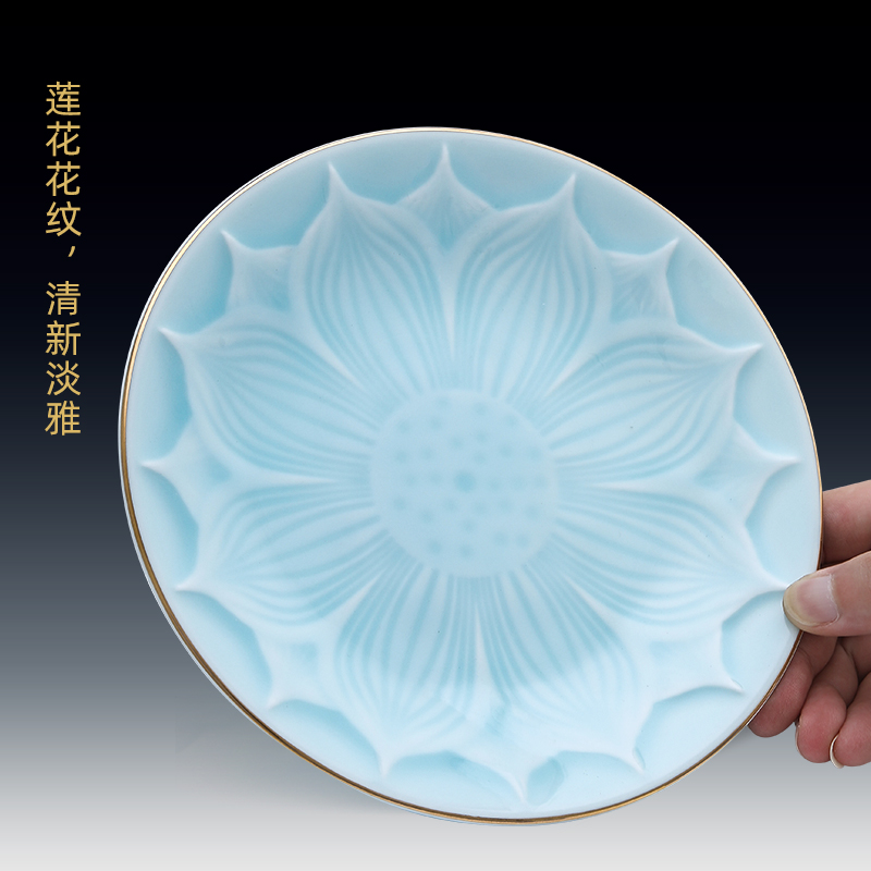 戴玉堂陶瓷描金青瓷圣水杯观音净水杯佛前供佛敬神水杯供奉用品