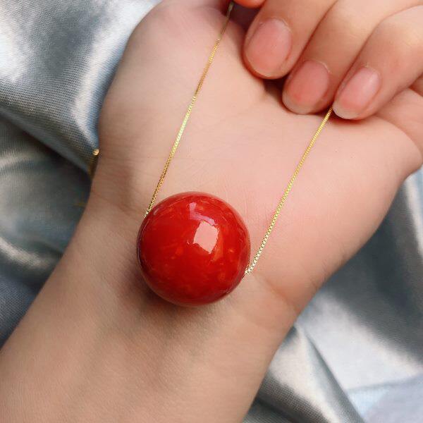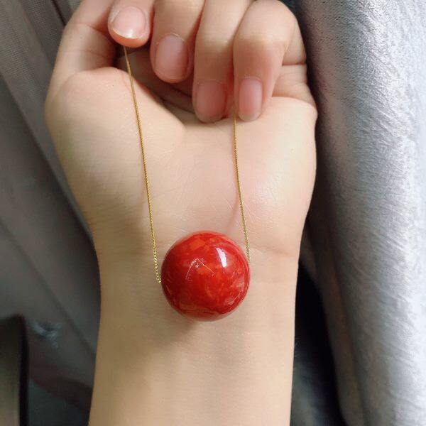泓石斋 小红漂亮红色大吊坠单珠大吊坠挂饰 百搭流行配饰约20mm