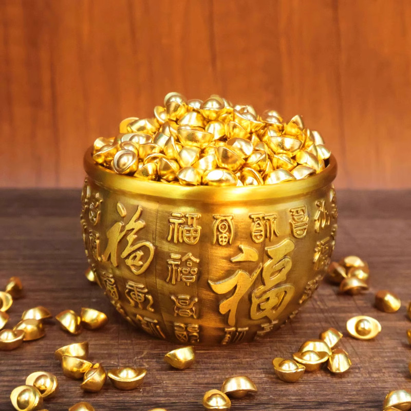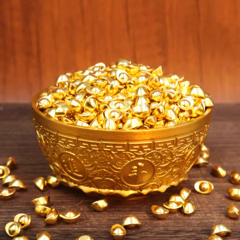 实心沙金小元宝摆件迷你小元宝仿金聚宝盆米缸装饰品配件招财聚财