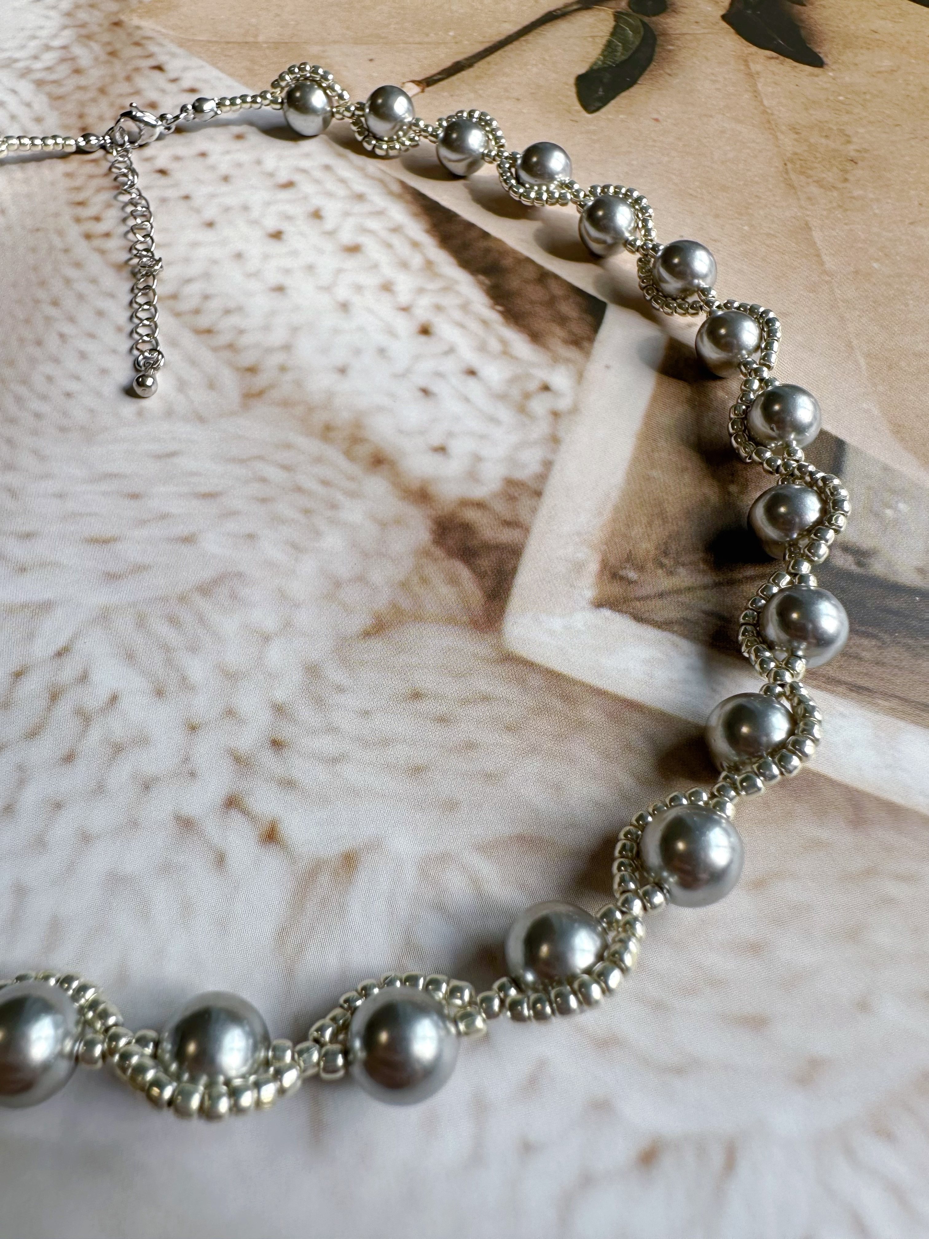 真多麻铂金银灰色高级感气质复古轻奢个性毛衣仿珍珠项链百搭524