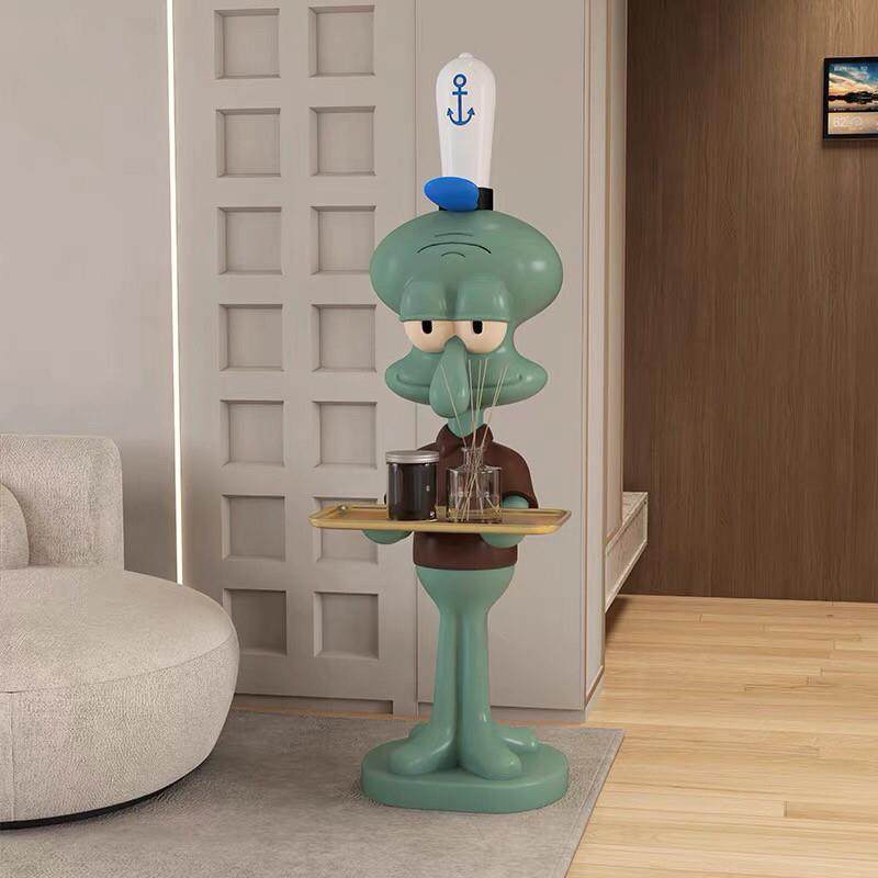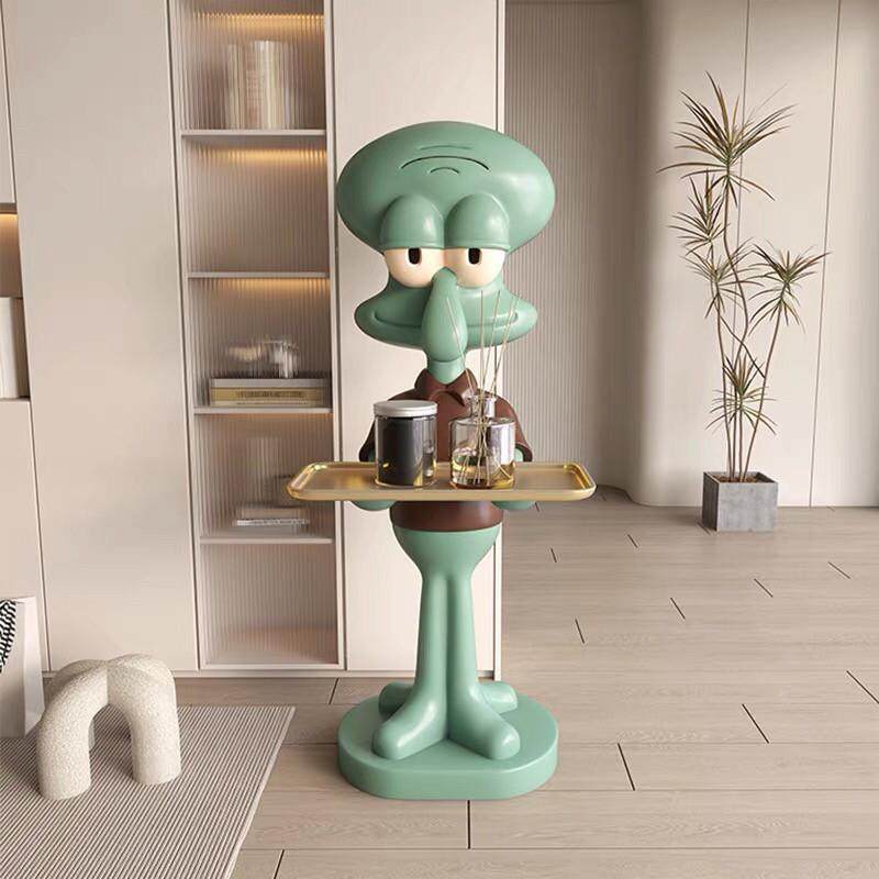 现货一米网红章鱼哥托 托盘落地超大摆件模型打工人沙发旁客厅置