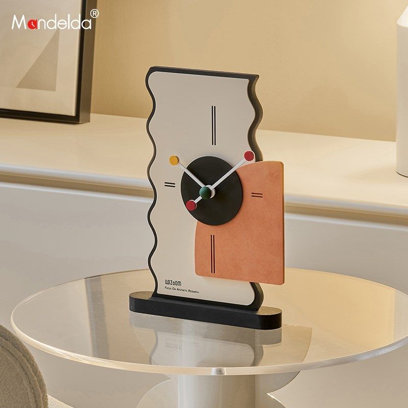 Mandelda家居入户玄关桌面摆件客厅电视柜座钟奶油风时钟装饰品