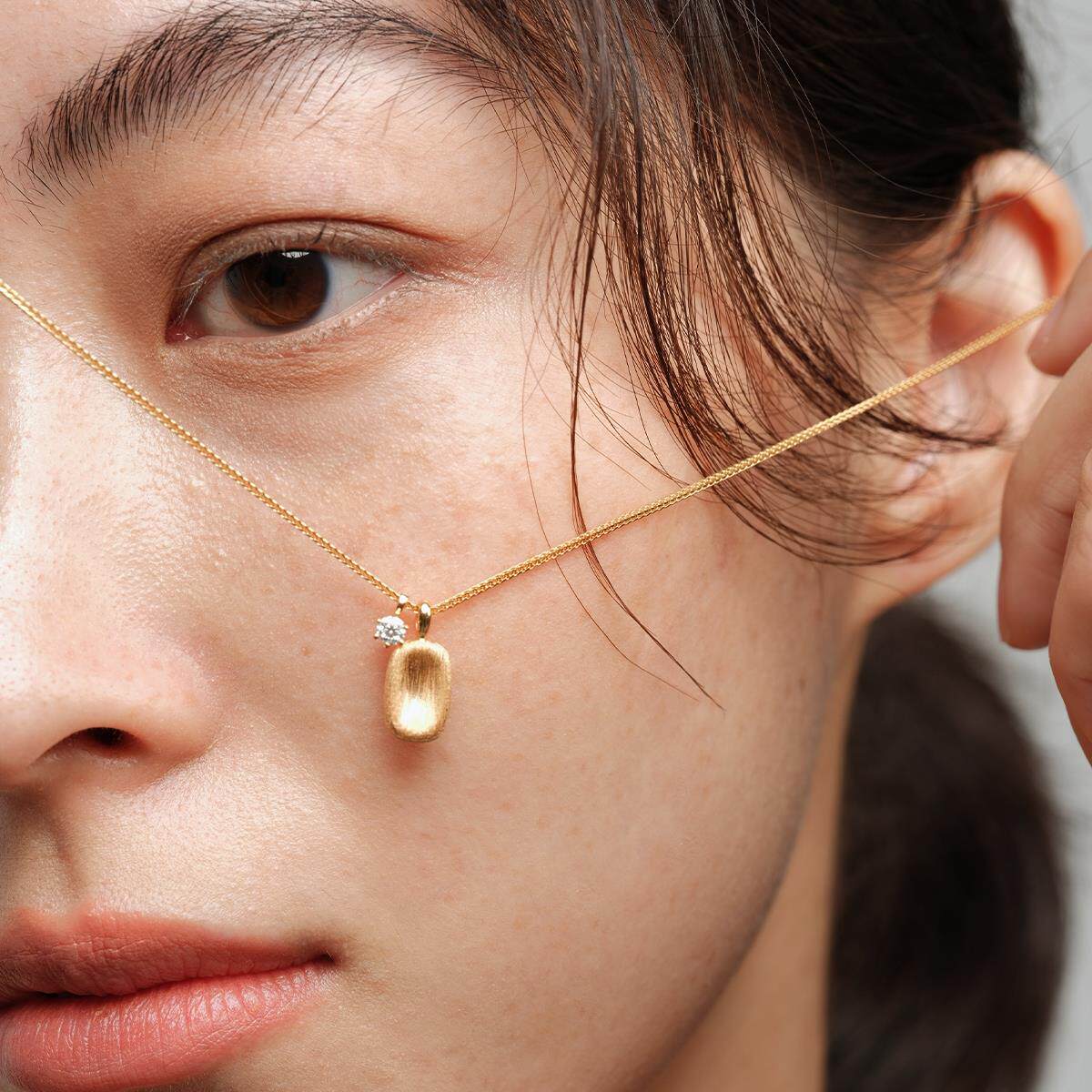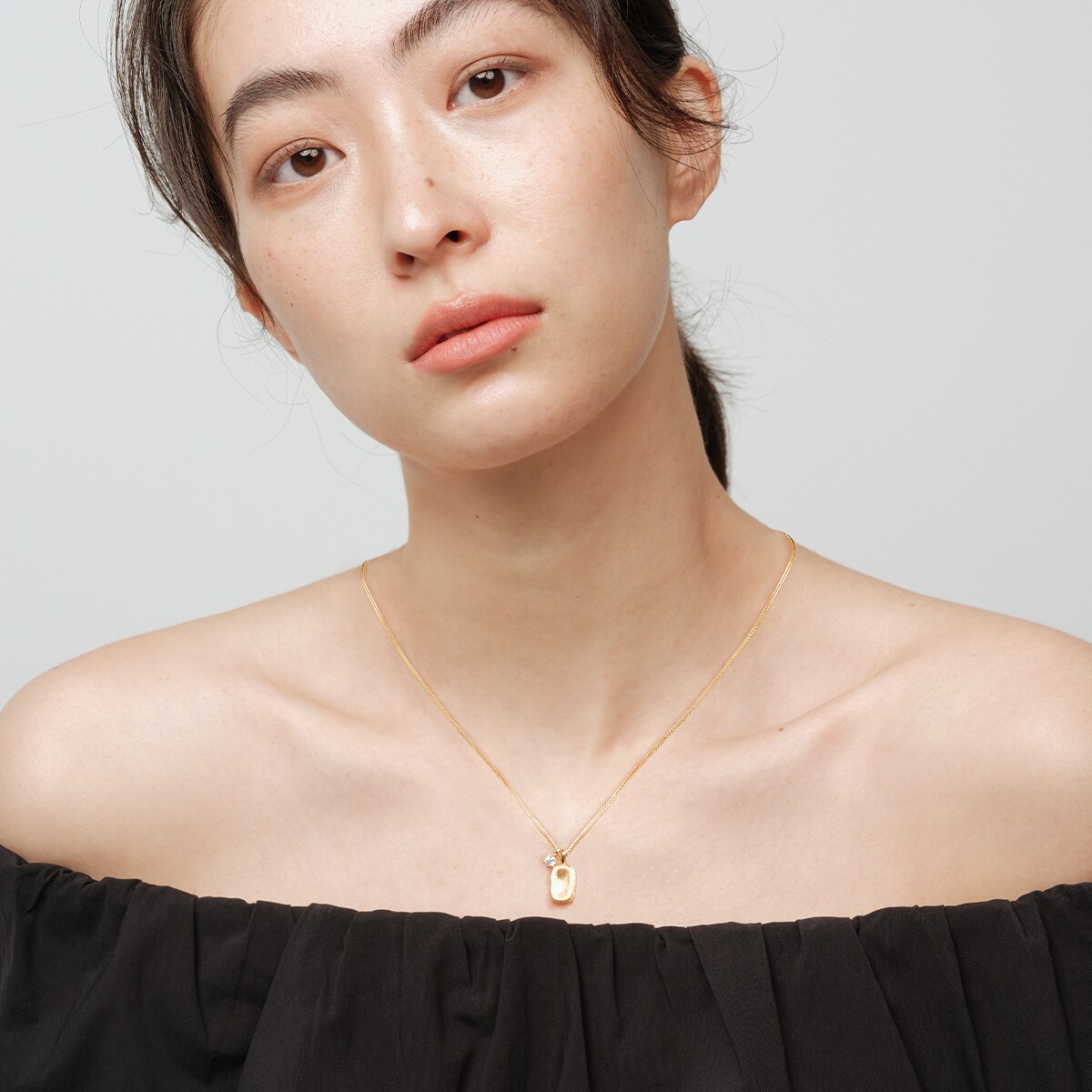 杭潮《半岛铁盒》拉丝方糖莫桑石925纯银项链精致通勤方牌锁骨链