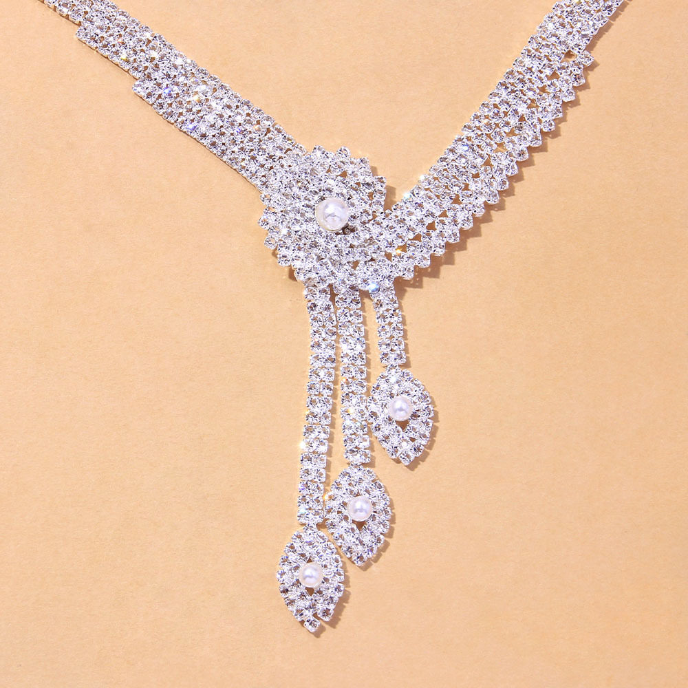 欧美装饰项链耳环手链戒指四件套新娘舞会晚宴礼服珍珠水钻配饰