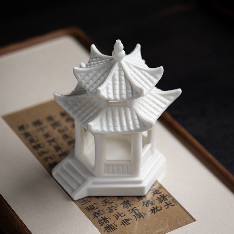 复古六角小凉亭茶桌茶宠小摆件创意盆栽鱼缸造景装饰茶空间微景观
