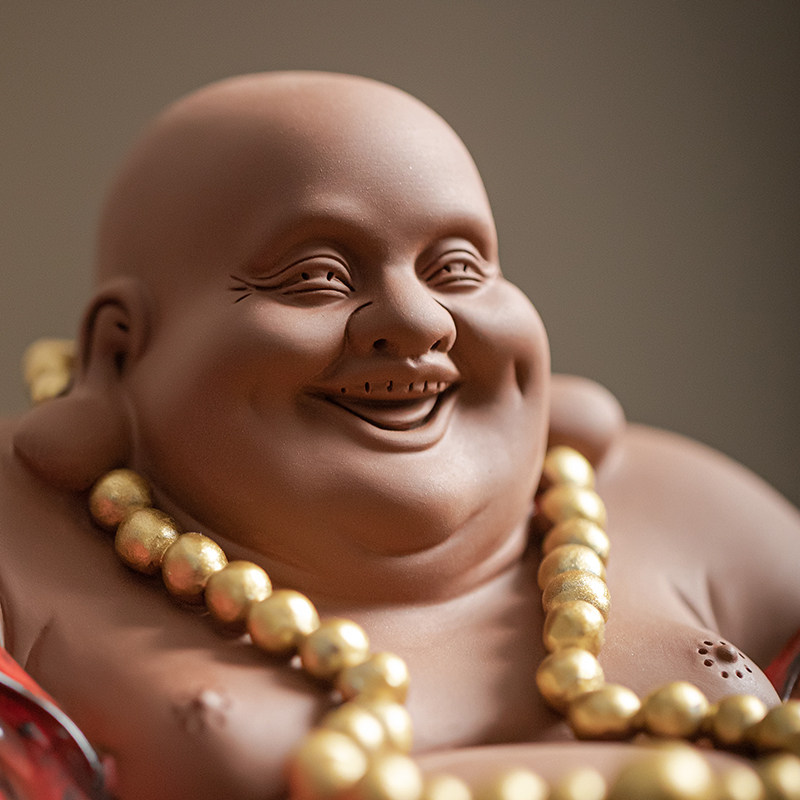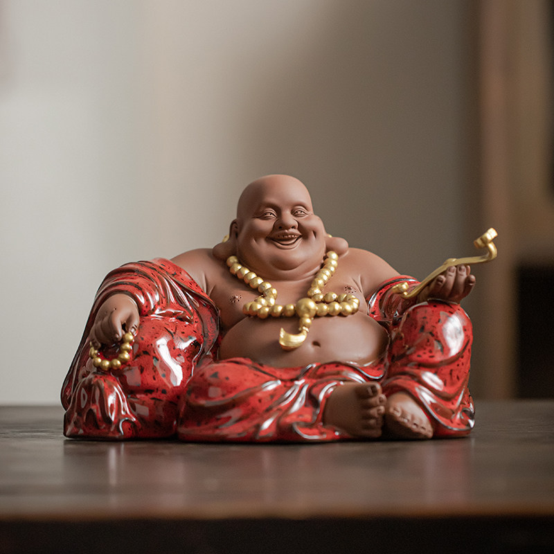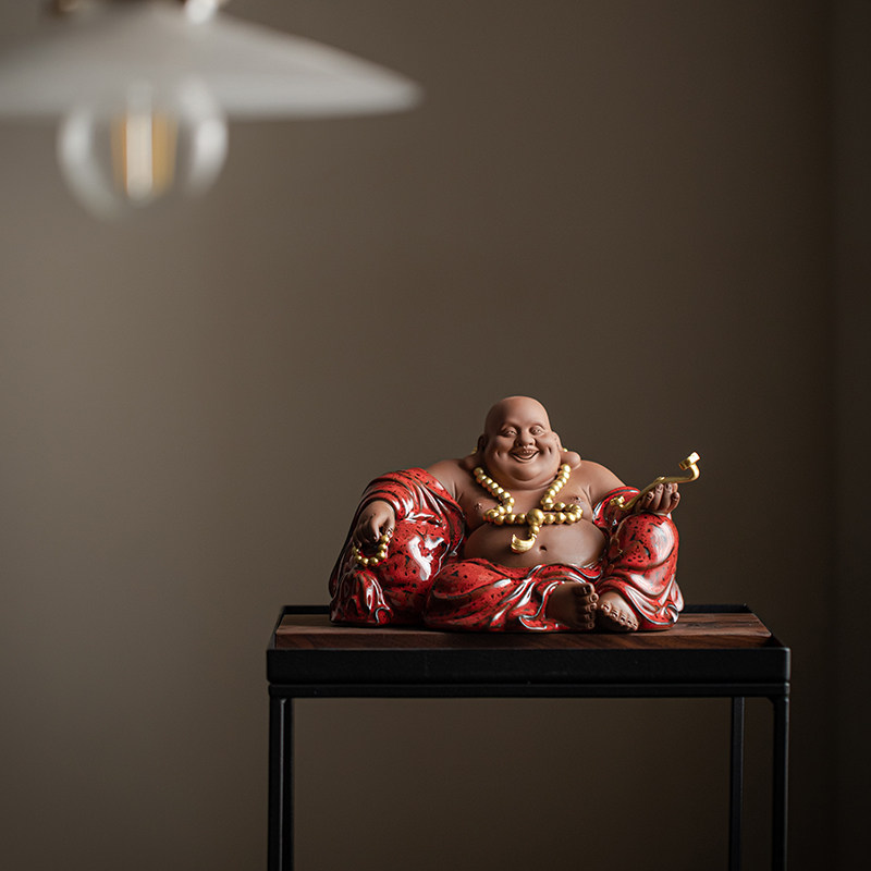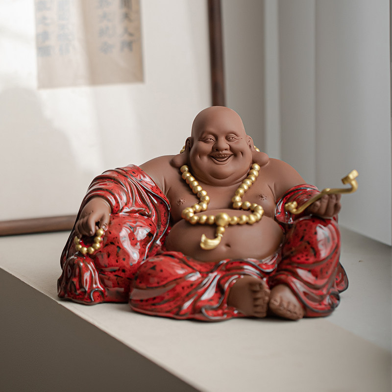 炼器陶瓷弥勒佛禅意摆件招财笑佛客厅玄关博古架办公室桌面装饰品