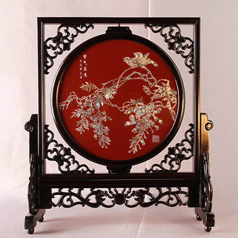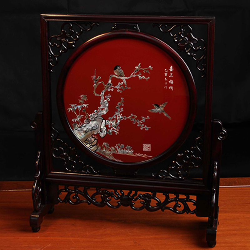 扬州漆器厂平磨螺钿28圆转架台屏结婚生日乔迁R商务礼品家居摆件