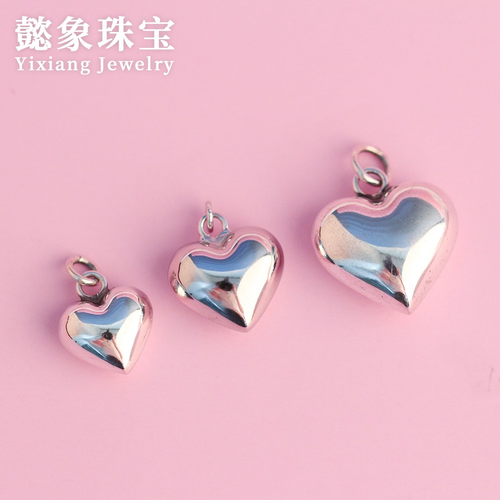 s925纯银大号爱心吊坠立体光面心形挂件diy手链项链12mm14mm18mm
