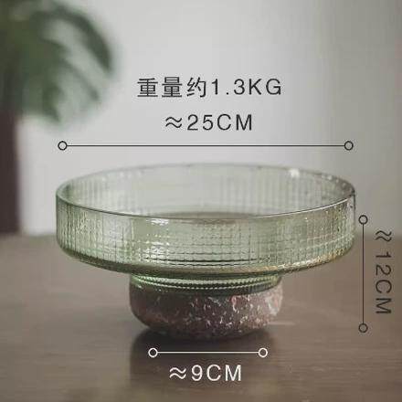 石复古敞口玻璃花瓶水培插花高款绿色创意苔直筒花器餐桌装饰摆件