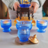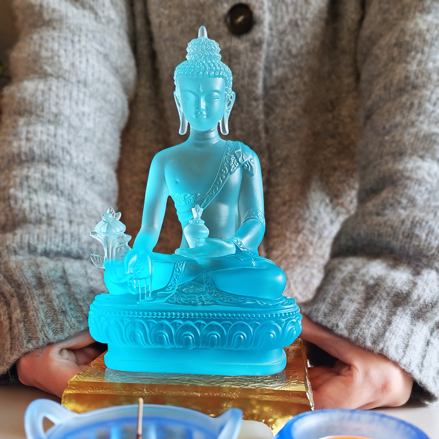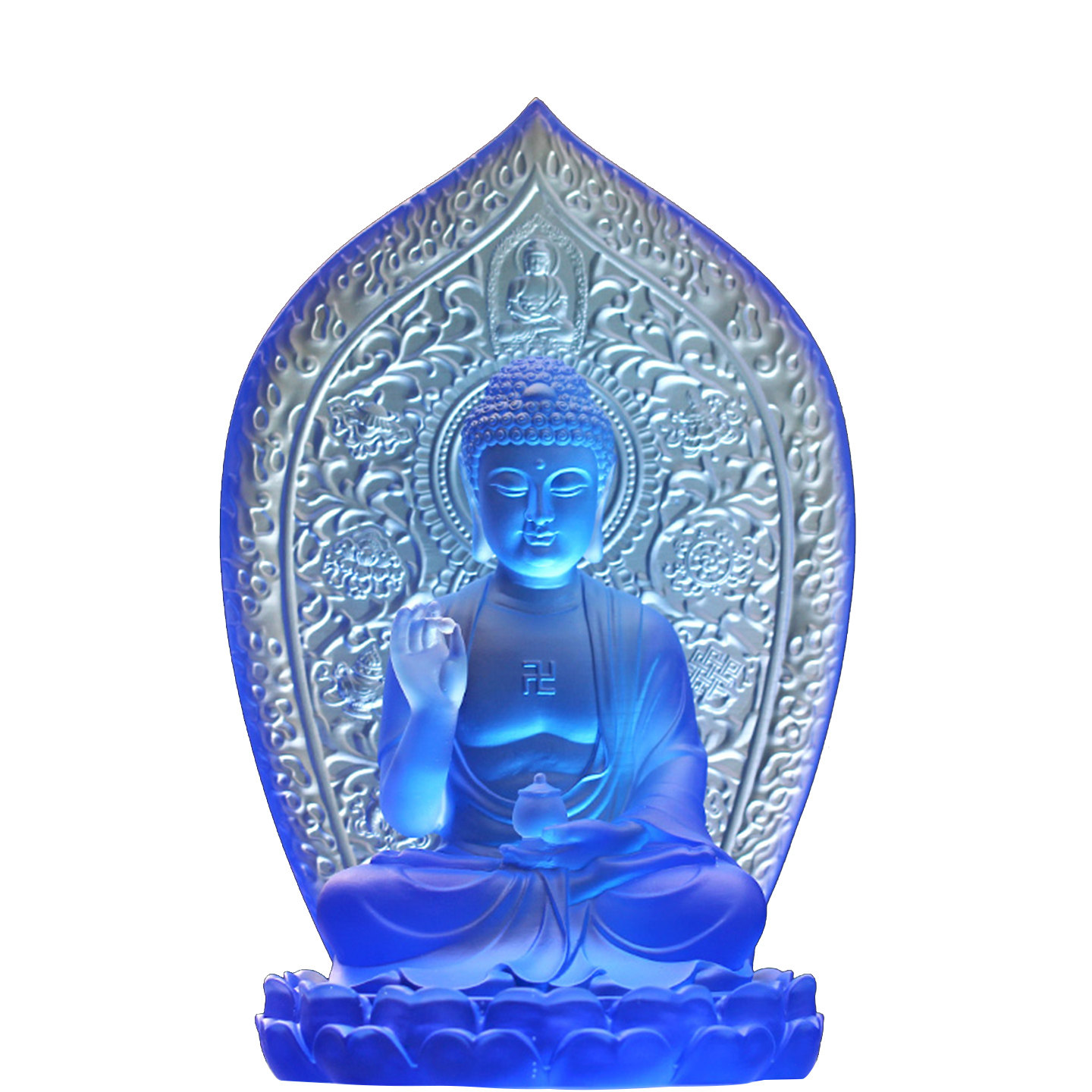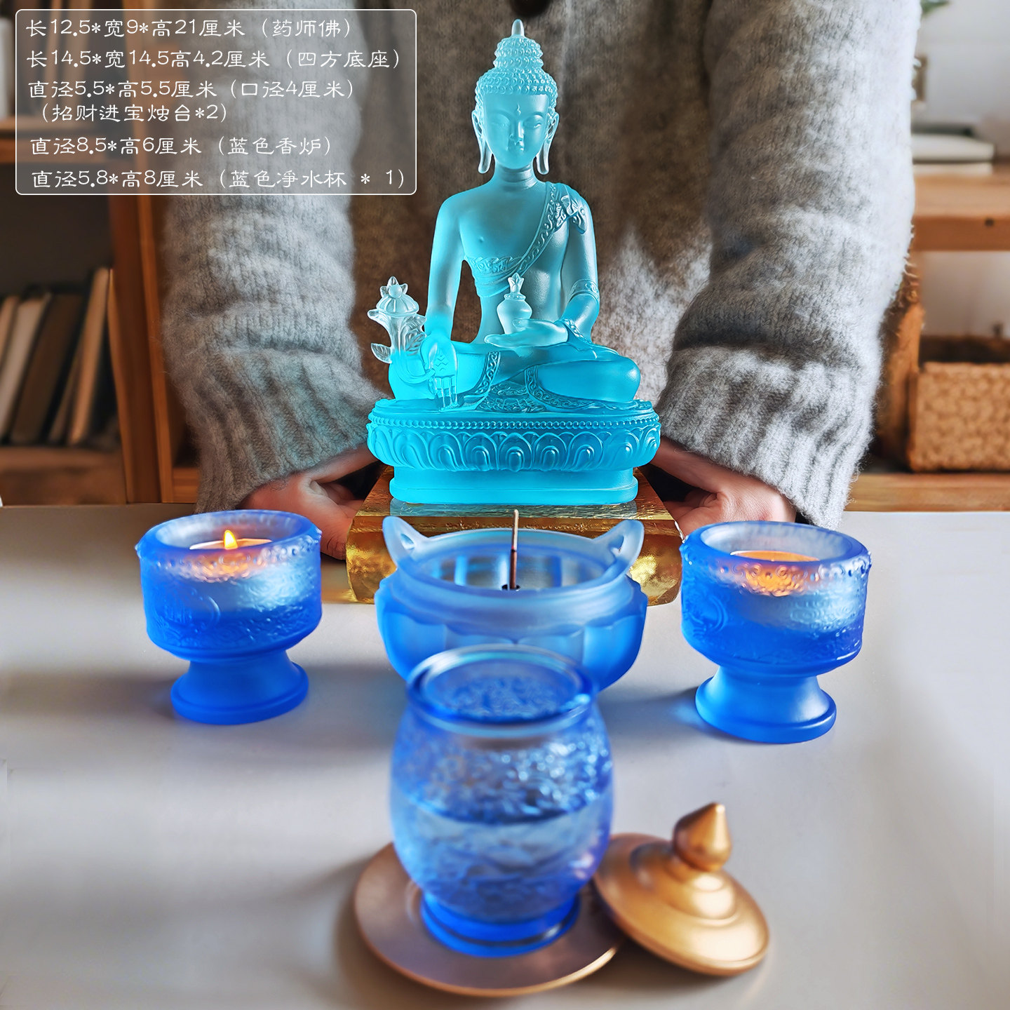 古法琉璃背板药师佛佛像家用供奉佛堂摆件蓝色净水杯香炉佛具套装