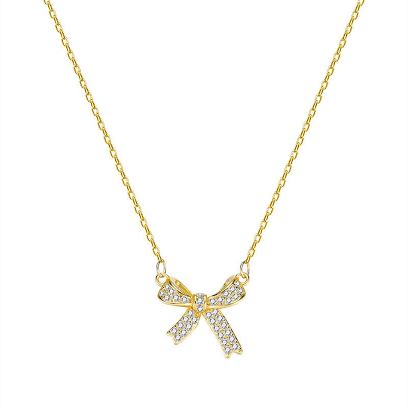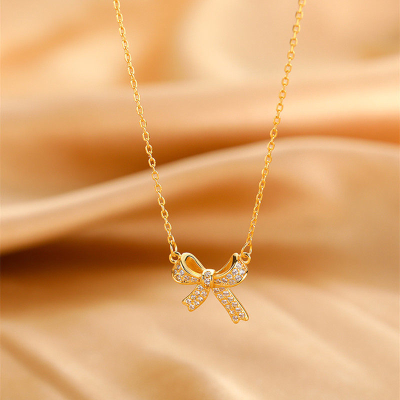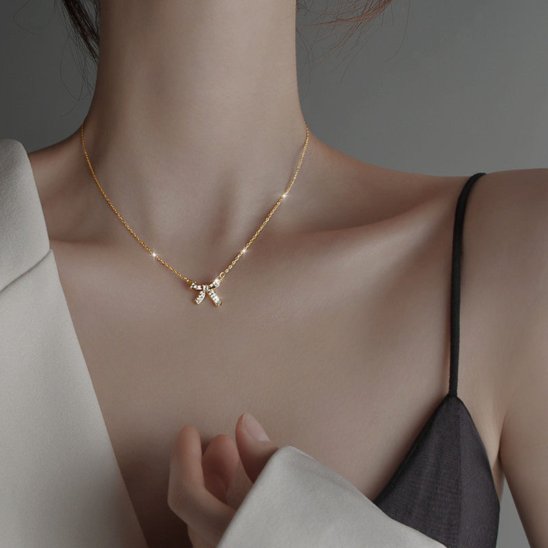 s925银蝴蝶结项链女轻奢小众设计感纯银仙气锁骨链新款潮夏轻奢