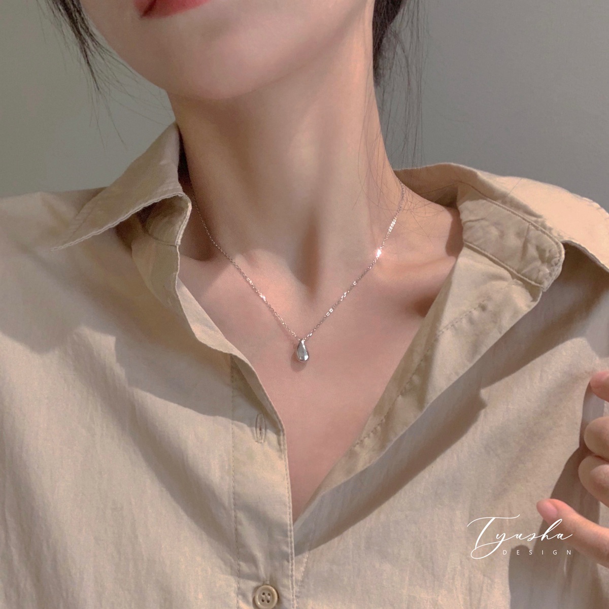 TYUSHA越戴越爱的小水滴925纯银项链女锁骨链小众轻奢气质百搭女