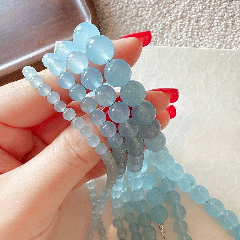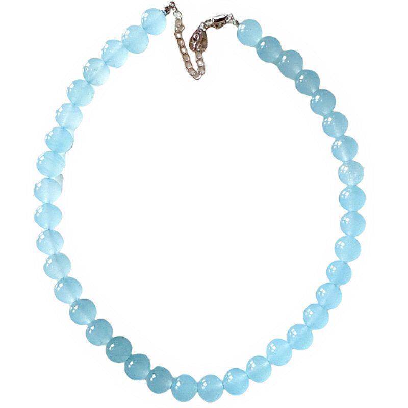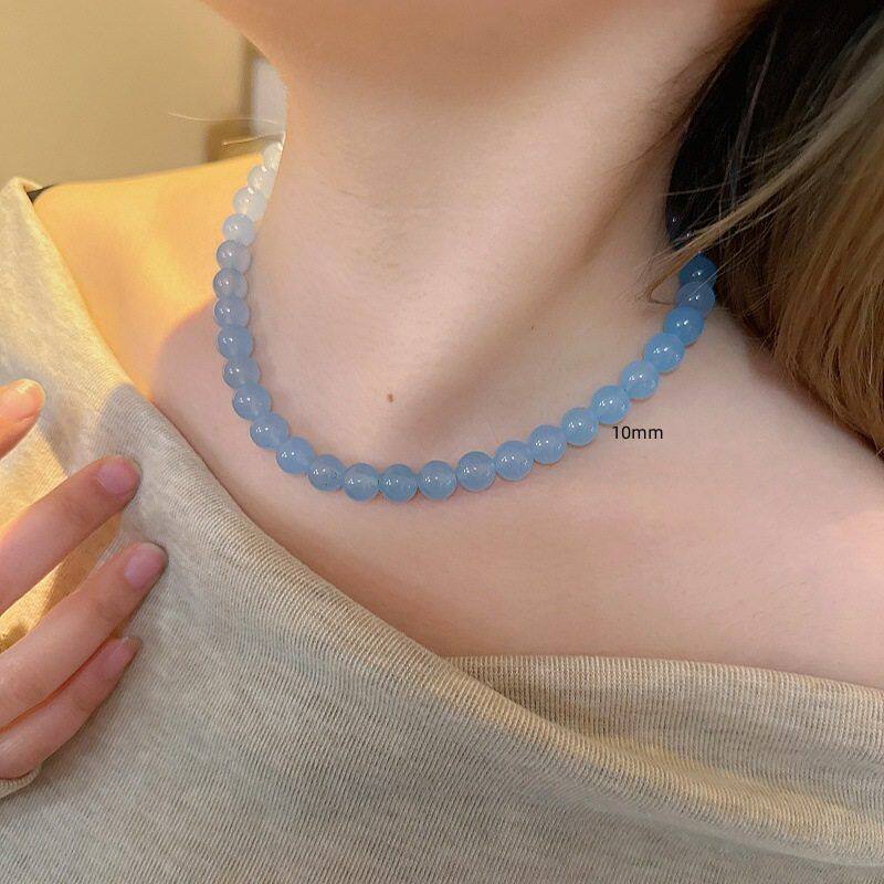 新中式手工串珠润色玉石海蓝项链小众设计清新时尚百搭颈链锁骨链