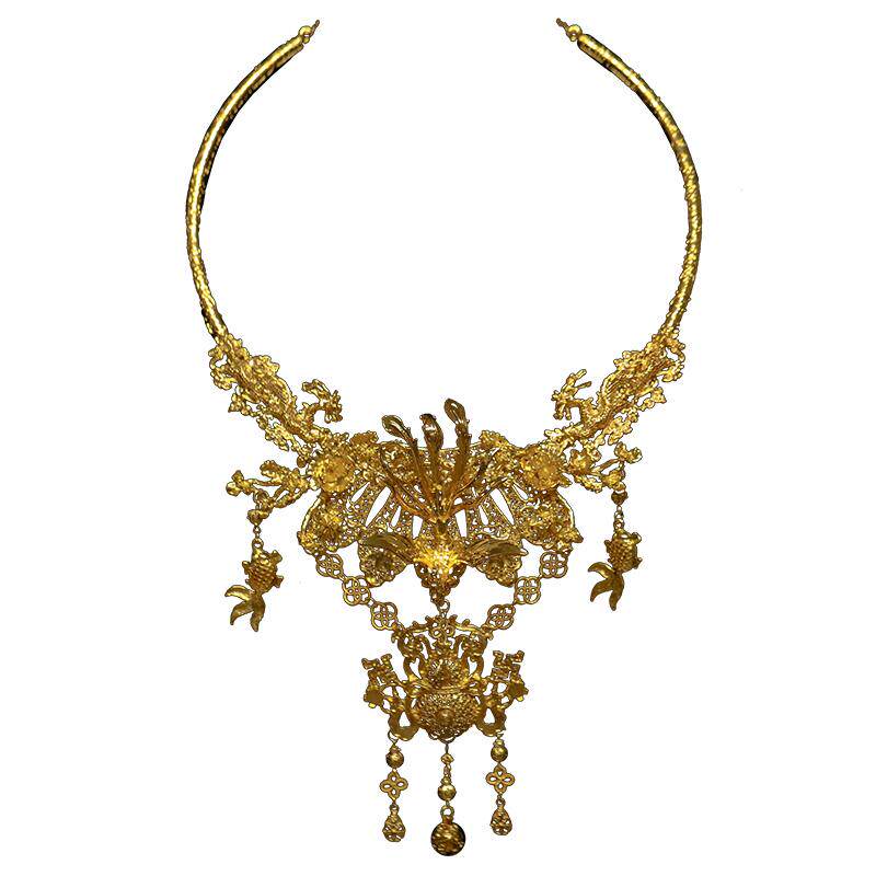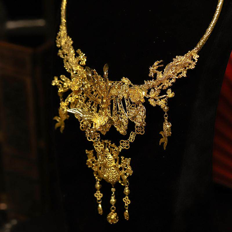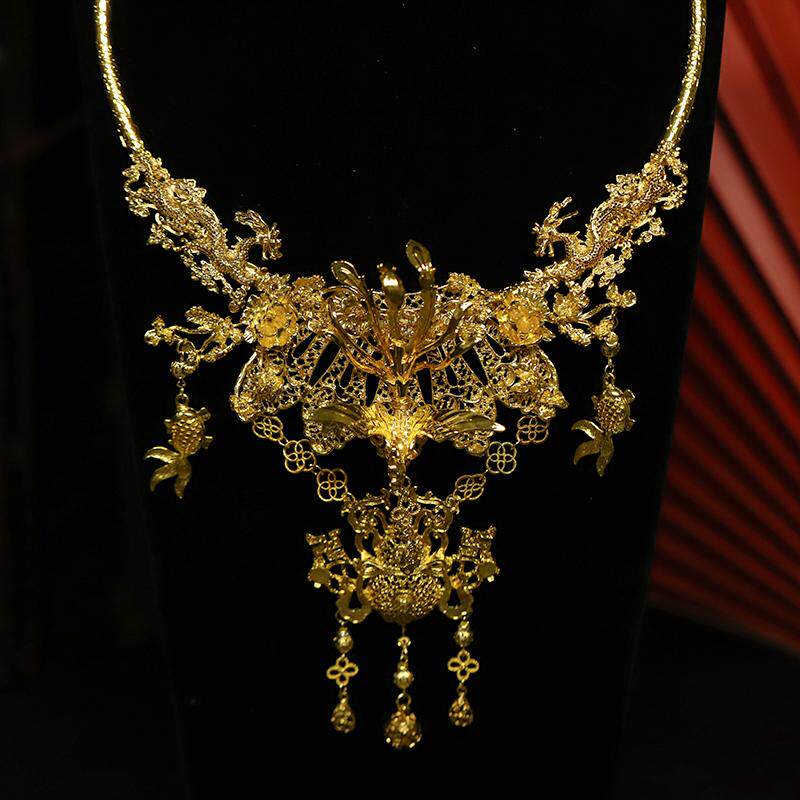中式重工金色新娘项圈游龙戏凤项圈马面裙仿黄金璎珞秀禾服项链