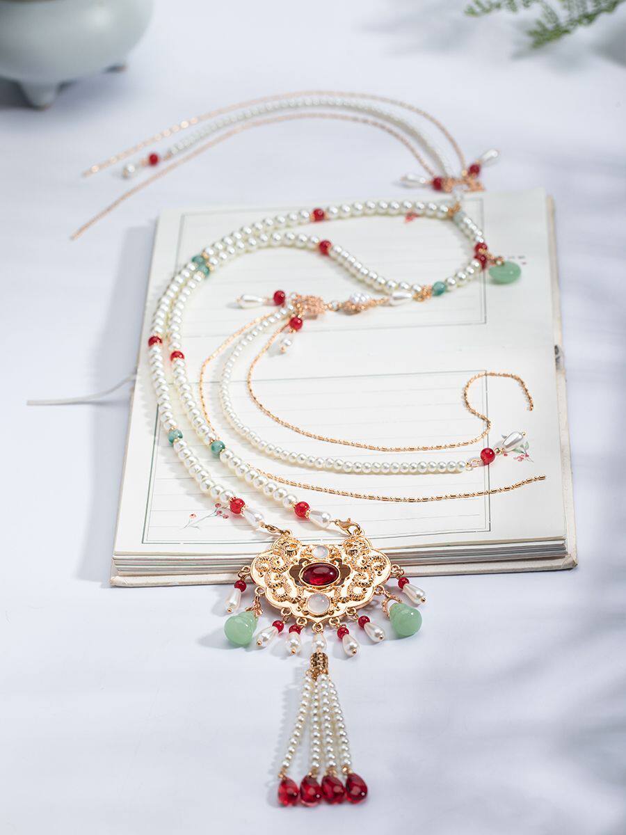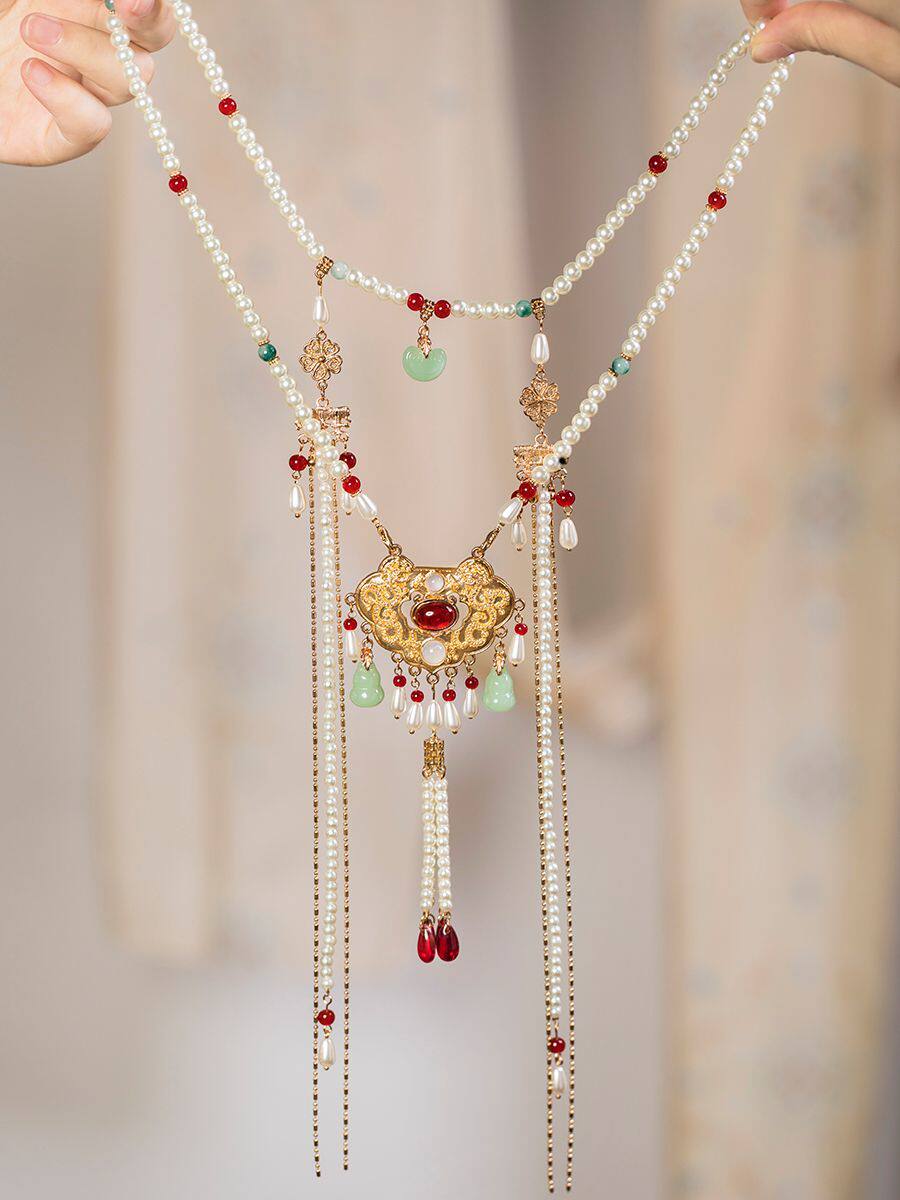 【美人醉】汉服马面裙项链背云长璎珞项圈复古珍珠吊坠古风饰品女