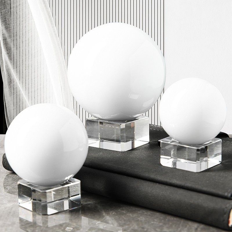 大小号乳白色水晶球摆件 客厅办公室家居招财装饰品创意圆球摆件