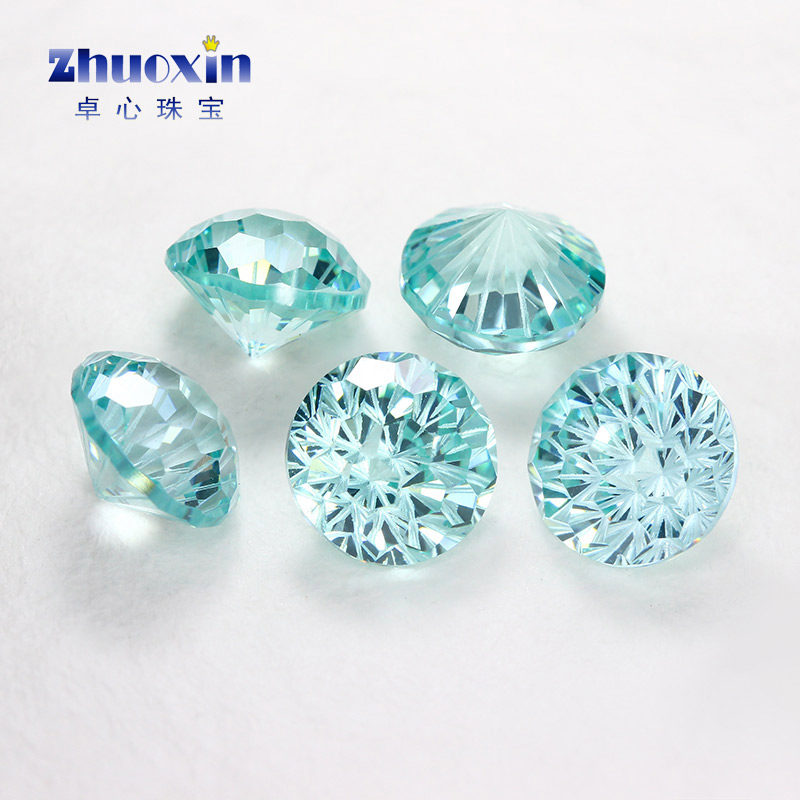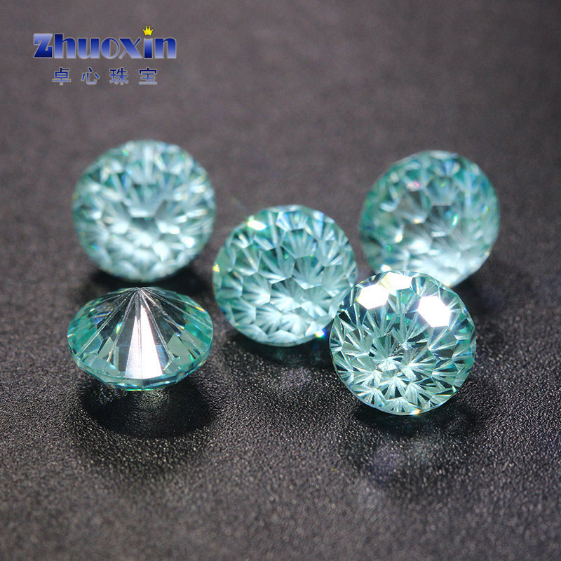 帕拉伊巴色烟花切圆形尖底裸石 蓝绿色高碳钻裸钻美甲耳钉镶嵌