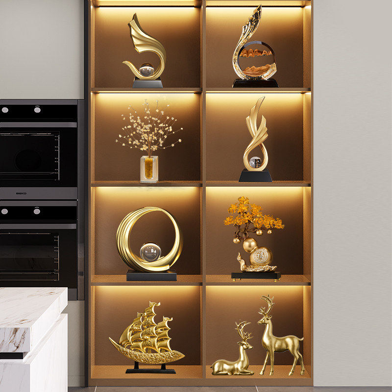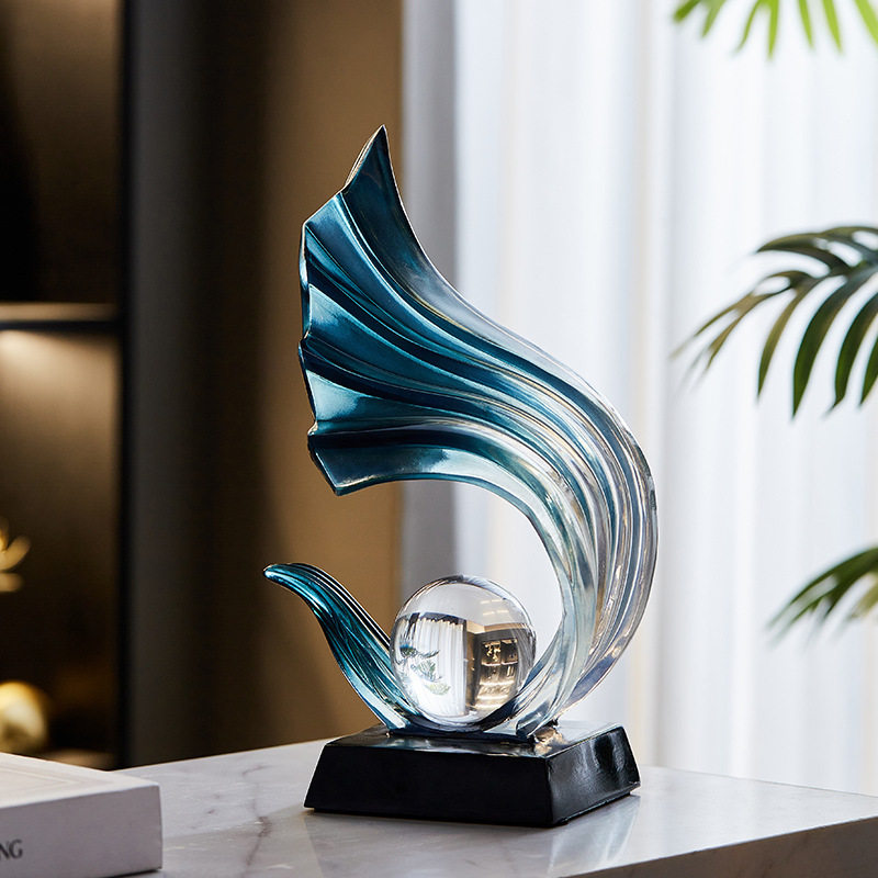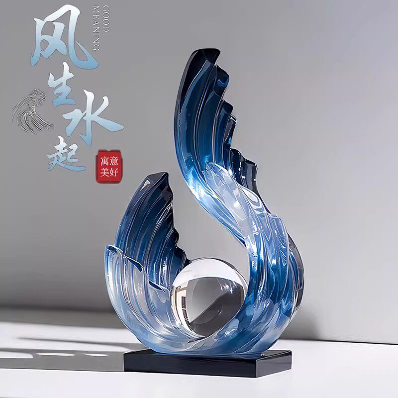 中式轻奢蓝色水晶球时来运转高档客厅展示柜新房旺宅乔迁礼物摆件