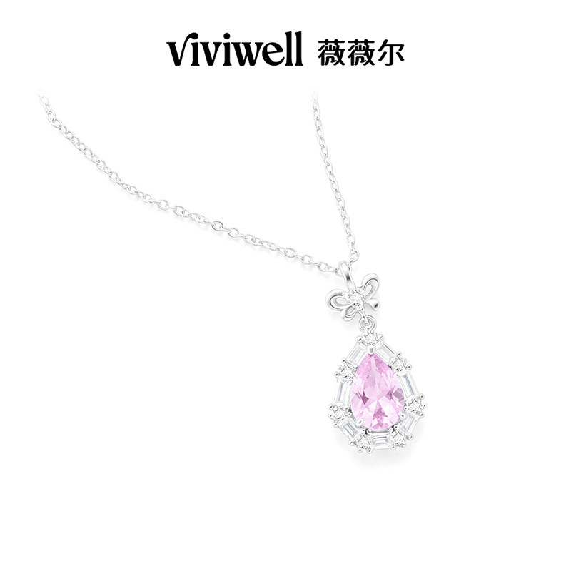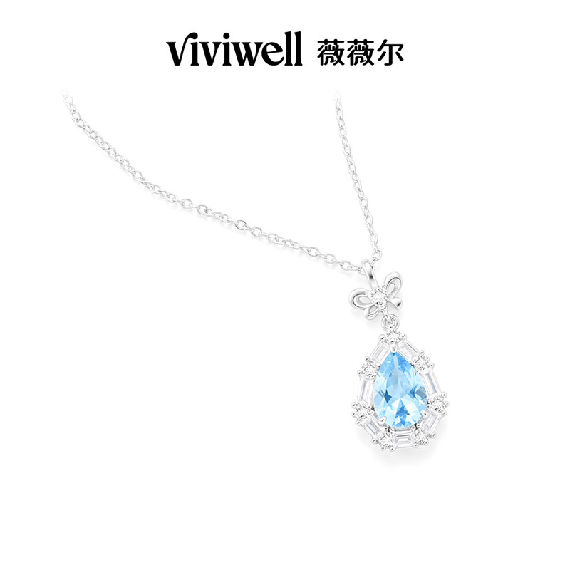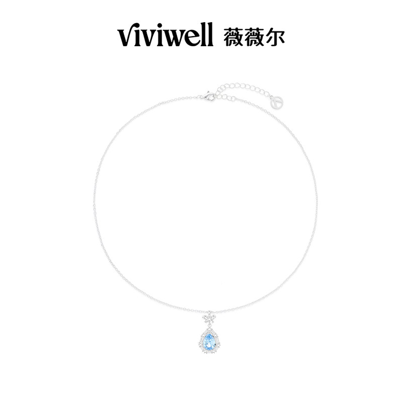 VIVIWELL星落蓝泪 轻奢蓝色项链女精致蓝眼泪水滴吊坠气质锁骨链
