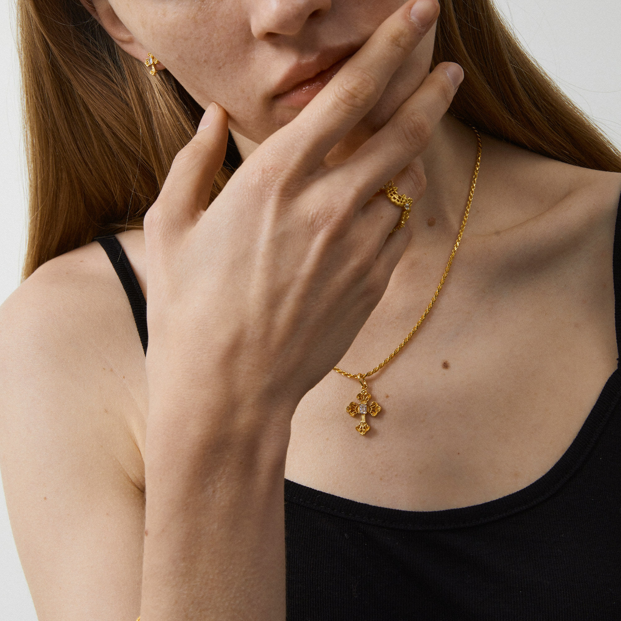 Mouhooland暮后之地蕾丝系列蕾丝镂空十字架项链锁骨链国潮配饰